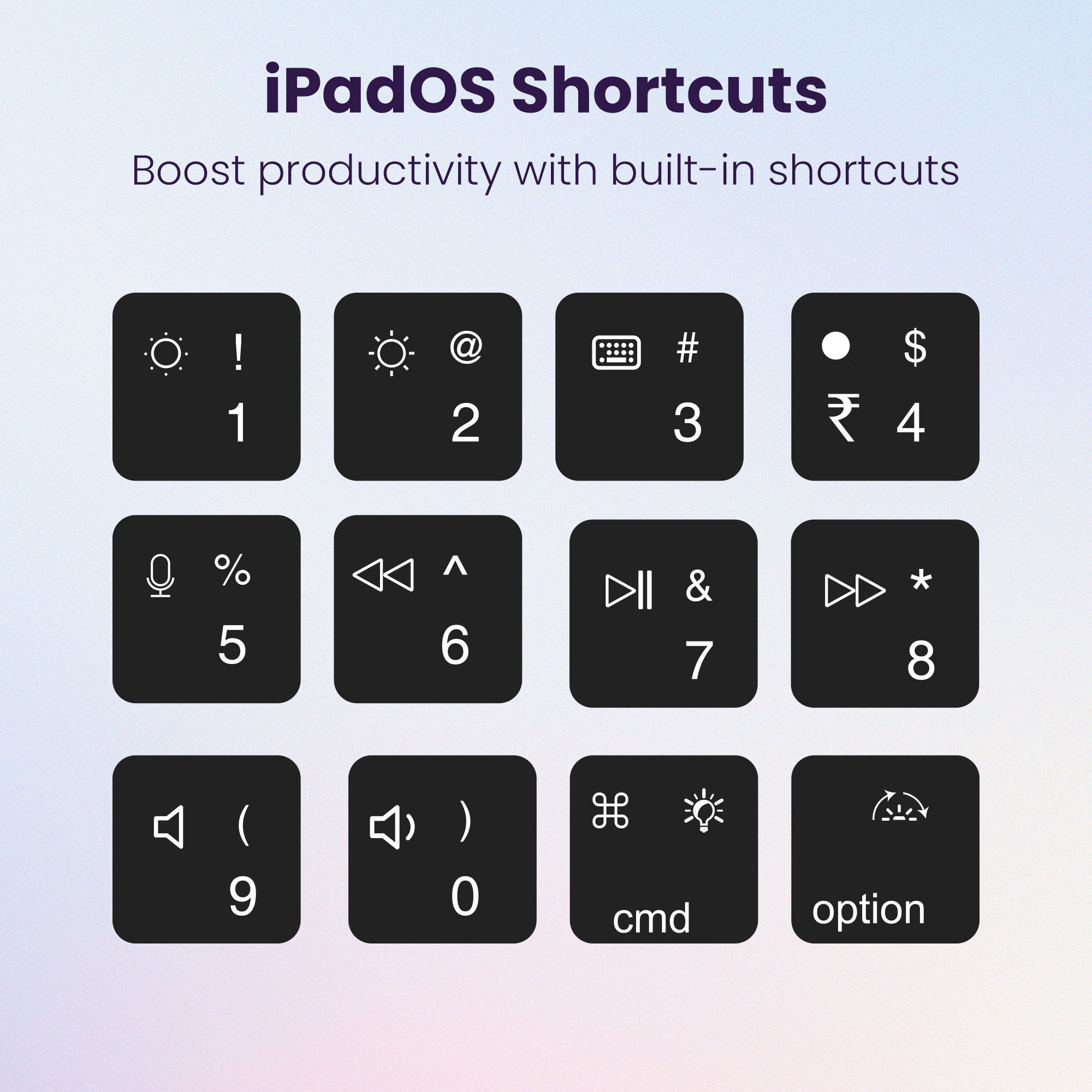 - Compatible with iPadOS Shortcuts: Boost your productivity with built-in iPadOS shortcuts, letting you perform tasks like switching apps, adjusting settings, and controlling playback effortlessly.