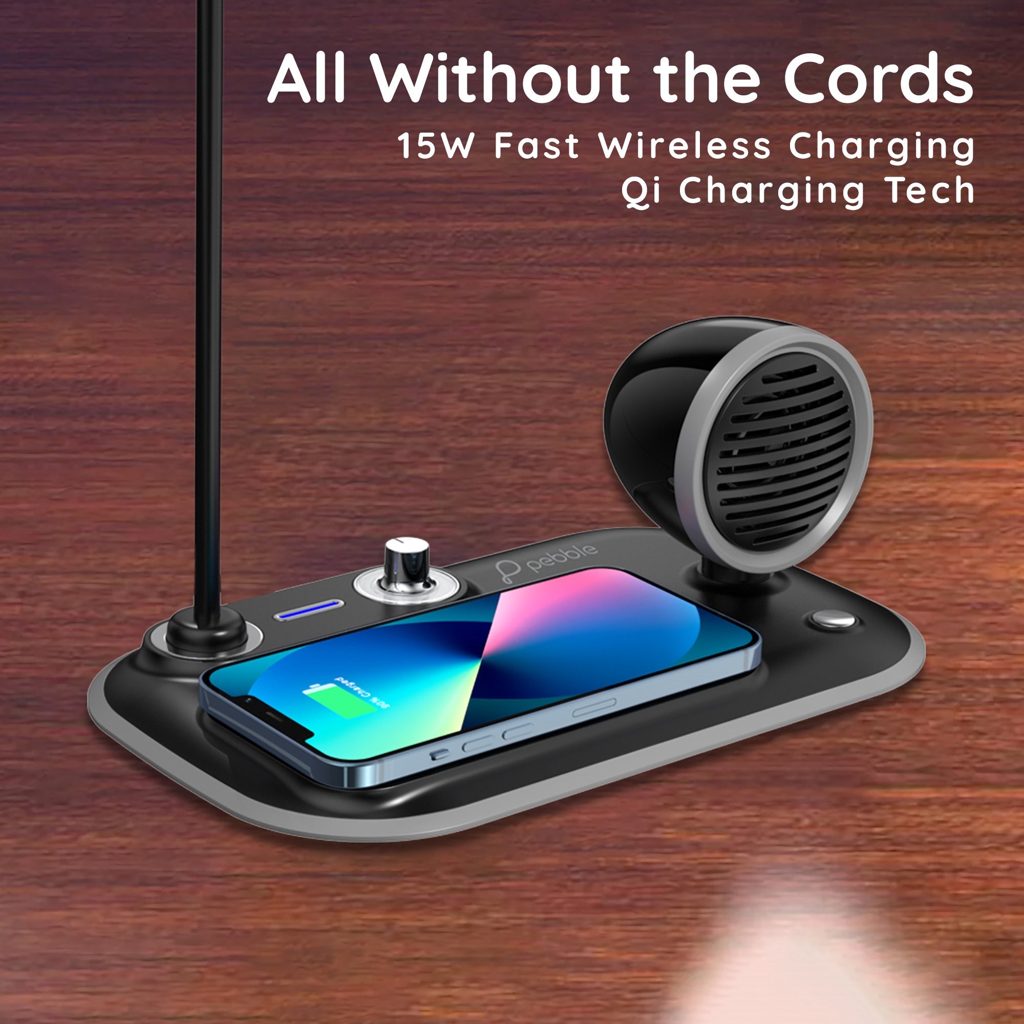 Pebble Aura 102 is a versatile desk lamp that does more. With Qi charging technology, it effortlessly powers up your devices wirelessly. Enjoy 5 watts of stereo sound integrated into this lamp, offering both practicality and entertainment. The adjustable desk light allows you to set the perfect ambiance, and wireless connectivity ensures convenience. Safety and protection features are built in, making the Pebble Aura 102 an ideal addition to your workspace for both illumination and productivity.