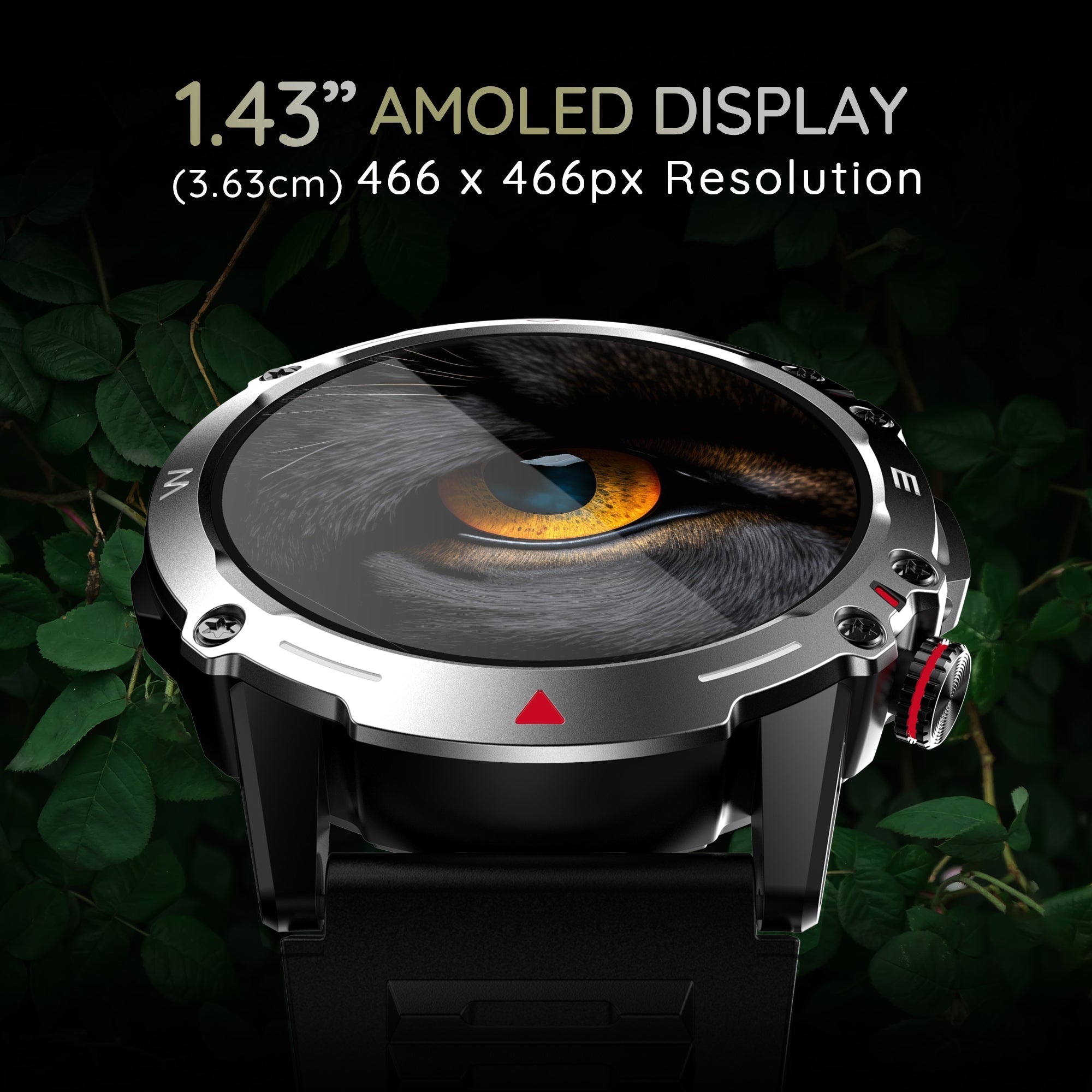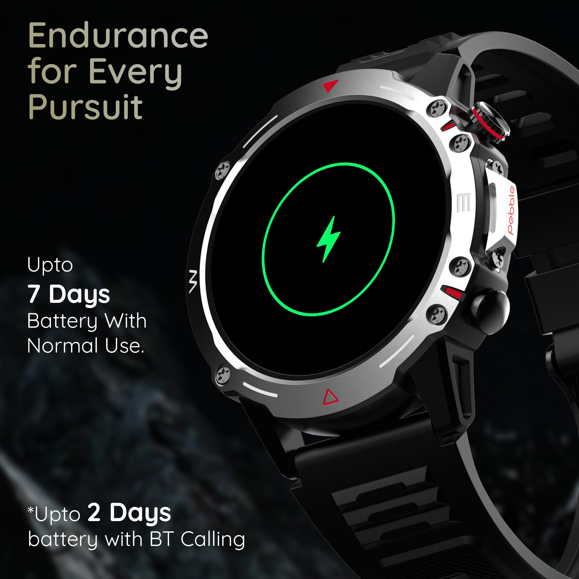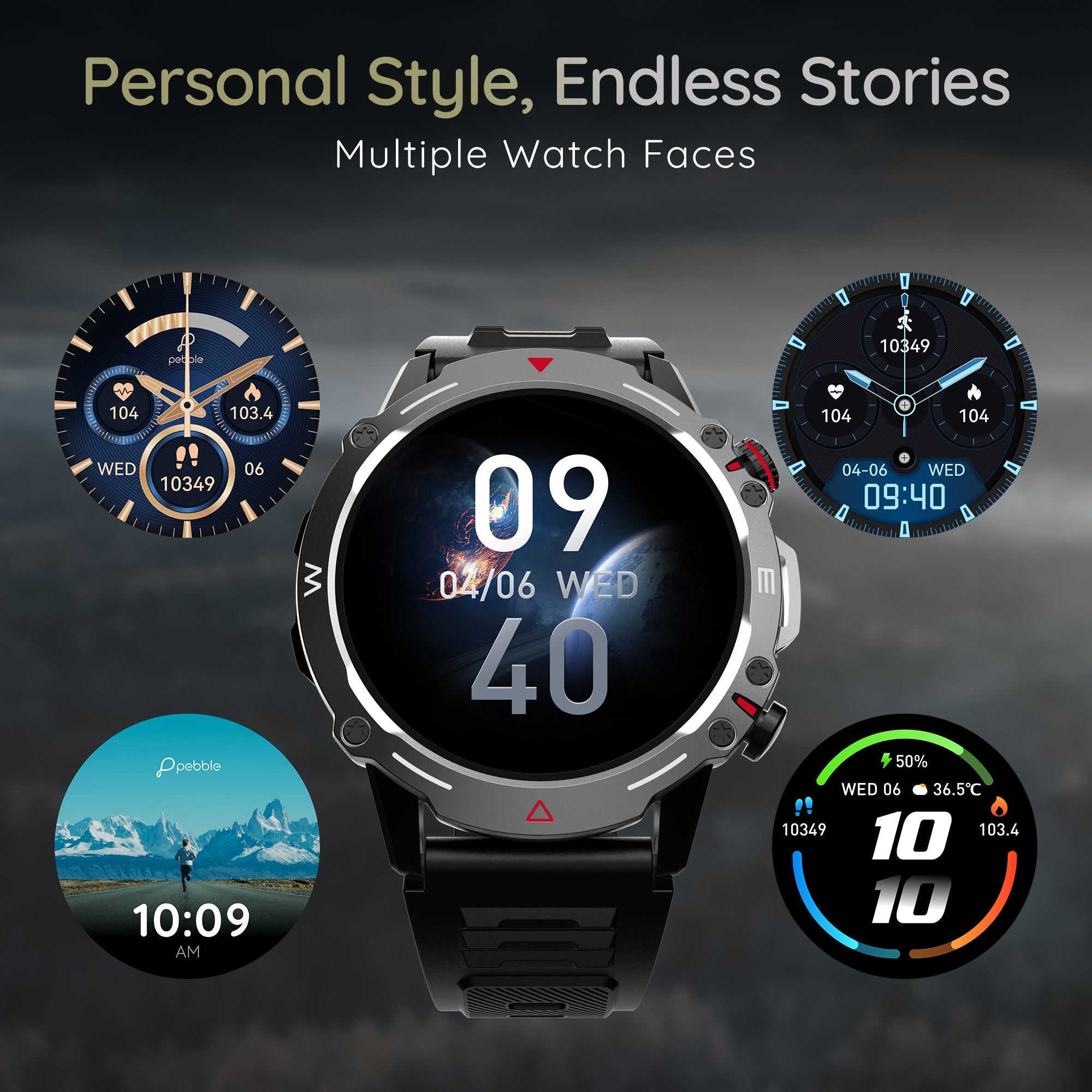 Pebble 1.43" Amoled Infinite Always on Display, BT Calling, 410 mAh Battery, Health Suite, Multiple Sports, Rugged Build, Smart Calculator,