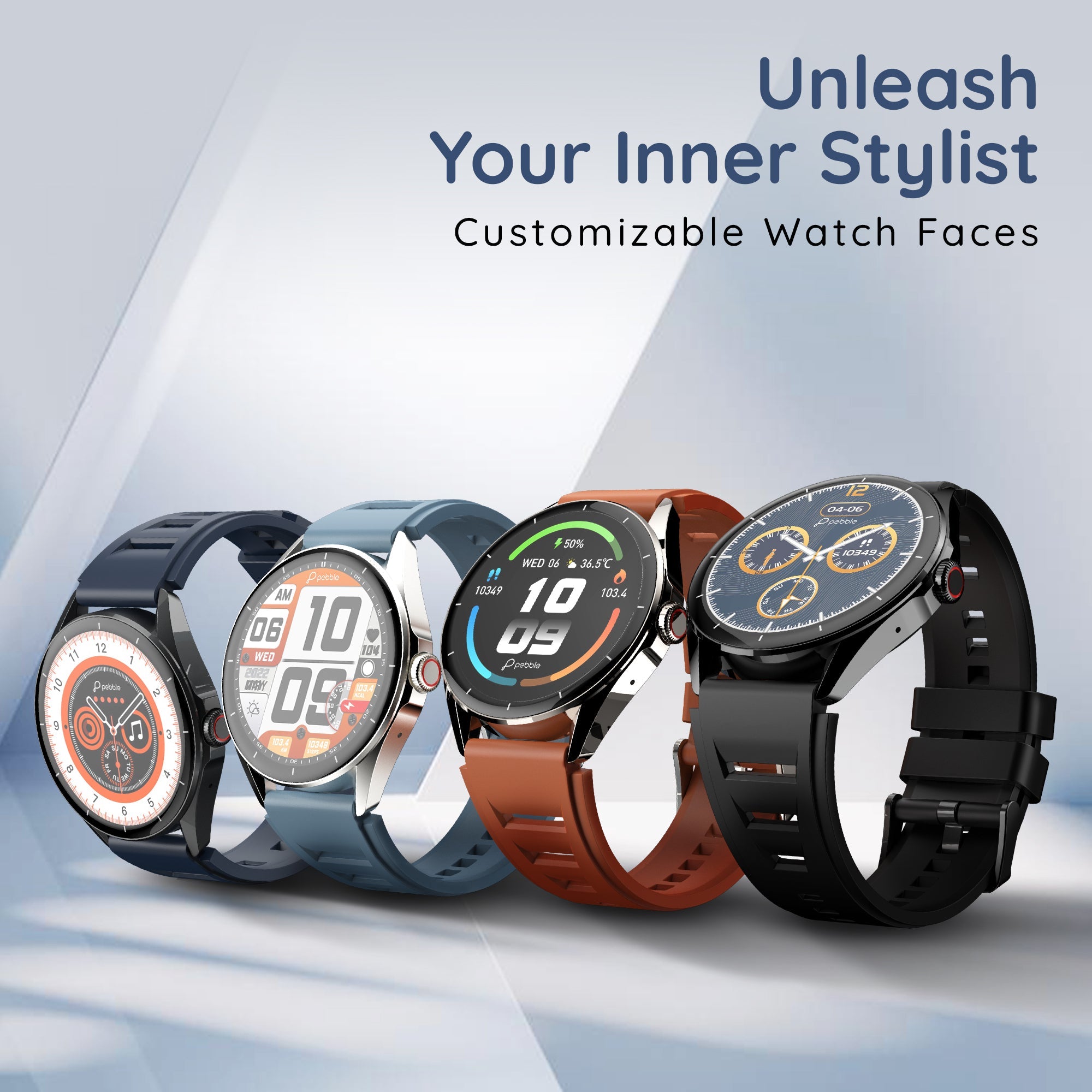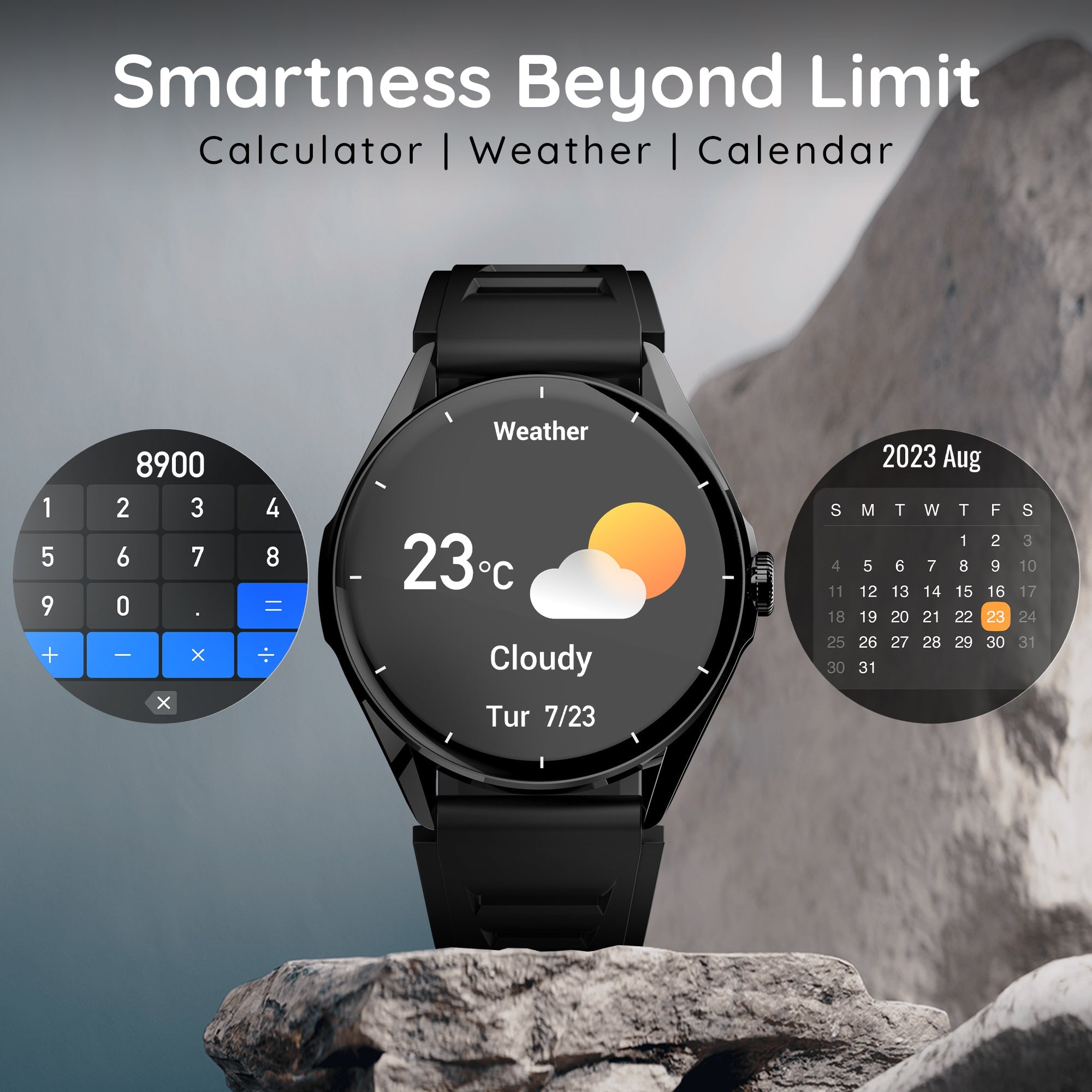 The Pebble Cosmos Valor is the epitome of innovation and style, featuring a dazzling 1.43" (3.63 cm) AMOLED display with a vibrant 700 Nits brightness. Enjoy the convenience of an Always-On Display for instant updates. Seamlessly connect with BT Calling and experience One-time BT Connect for effortless pairing. This smartwatch is your perfect fitness companion with Multiple Sports Modes, Step Pedometer, Sleep Monitor, and the comprehensive Health Suite. Stay organized and informed with the Alarm & Notification system while utilizing the intuitive Rotating Crown. Engage AI Voice Assistance for enhanced convenience and elevate your wearable experience with the Pebble Cosmos Valor.