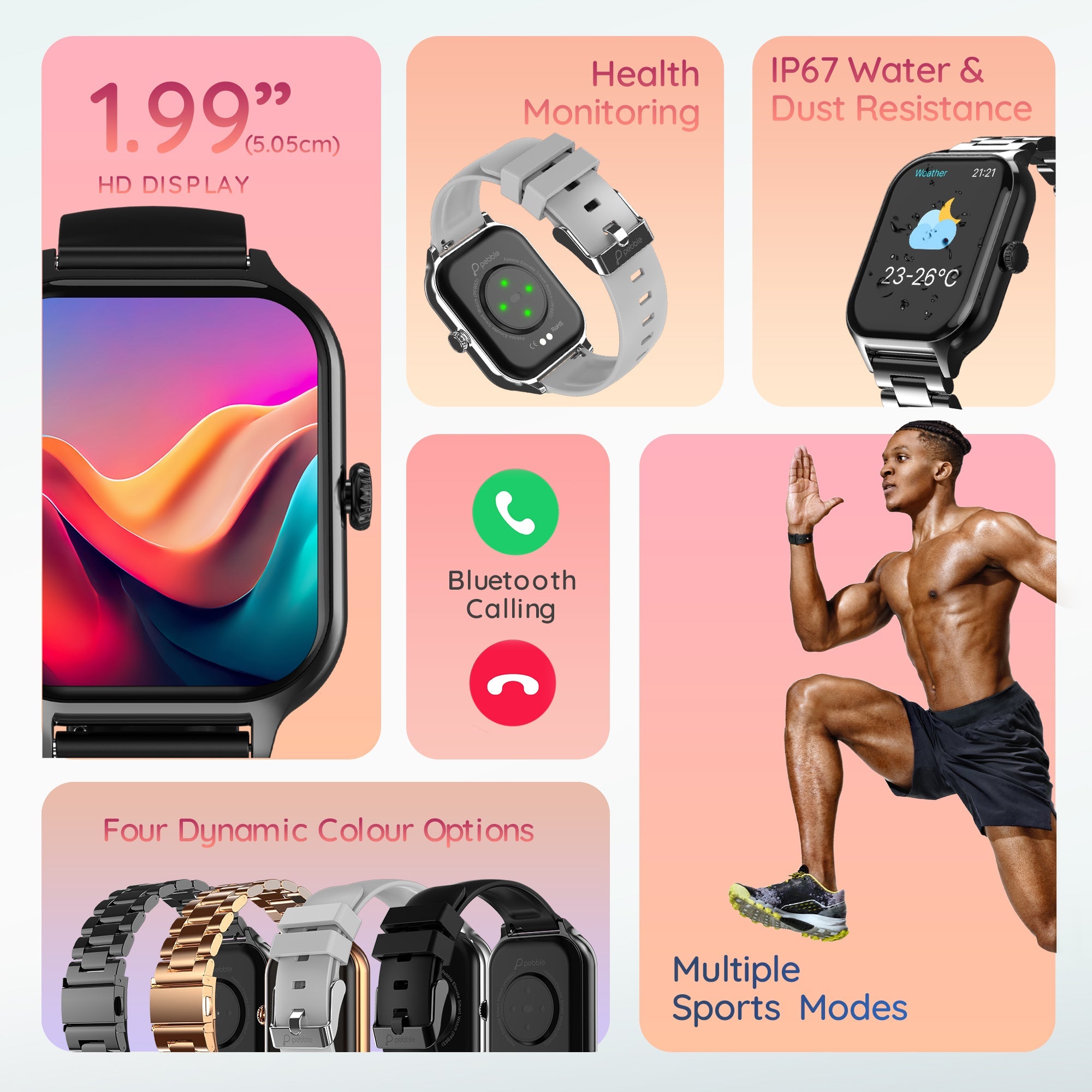 Effortless BT Calling: Stay connected on the move with convenient Bluetooth Calling, making communication hassle free directly from your wrist.
