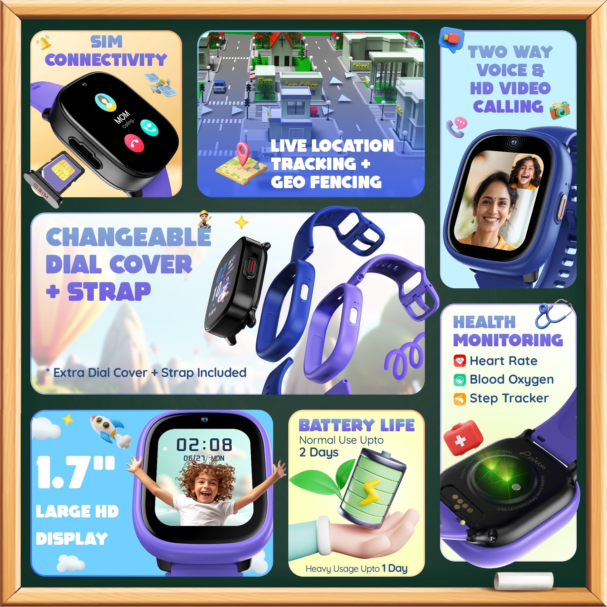 24x7 Heart Rate Monitoring: Track your child's heart rate throughout the day.