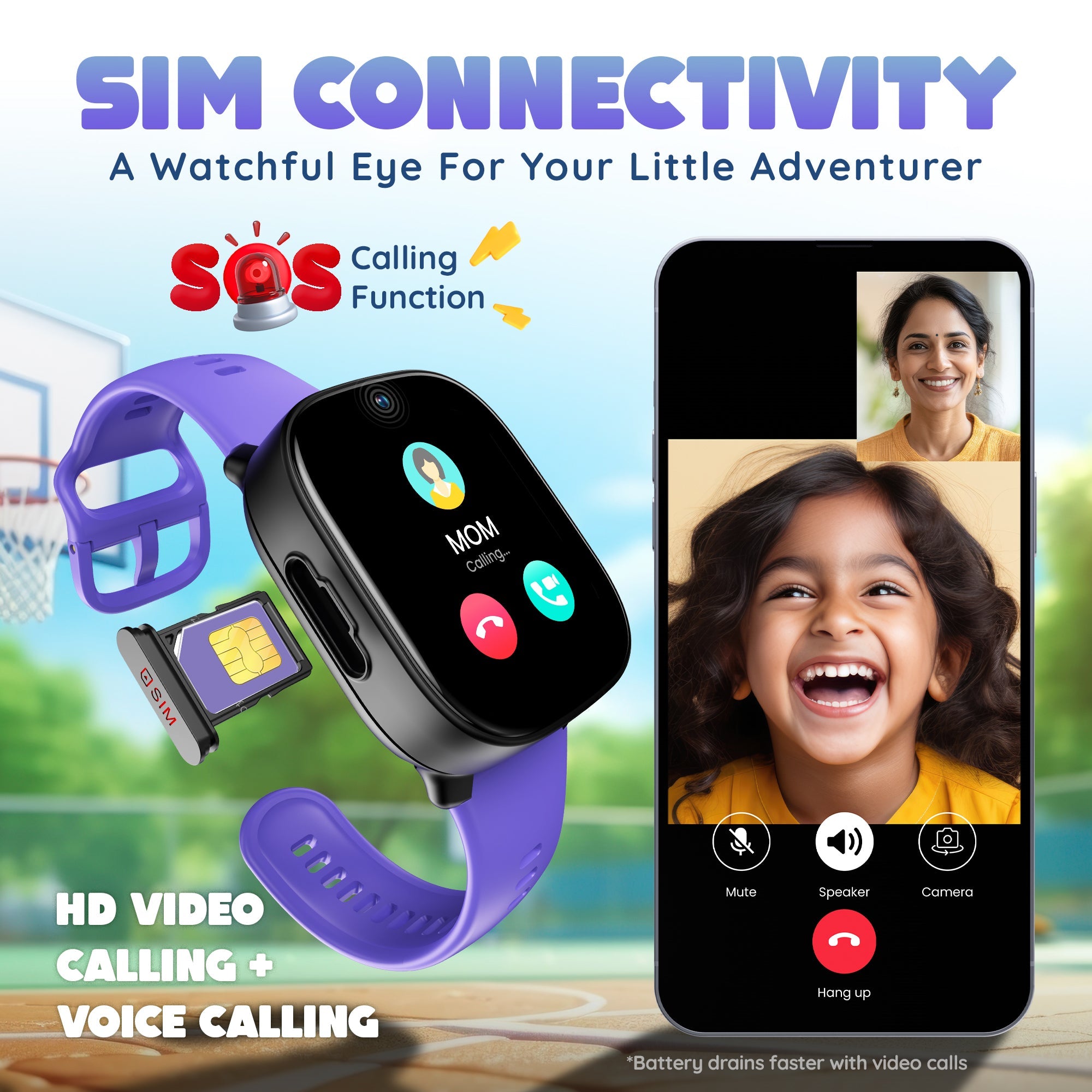 A watchful eye for your little adventurer with HD Video Calling + Voice Calling, ensuring constant connection with your child. Stay Close Anytime, Anywhere SOS Calling Function: Onetouch emergency calling...