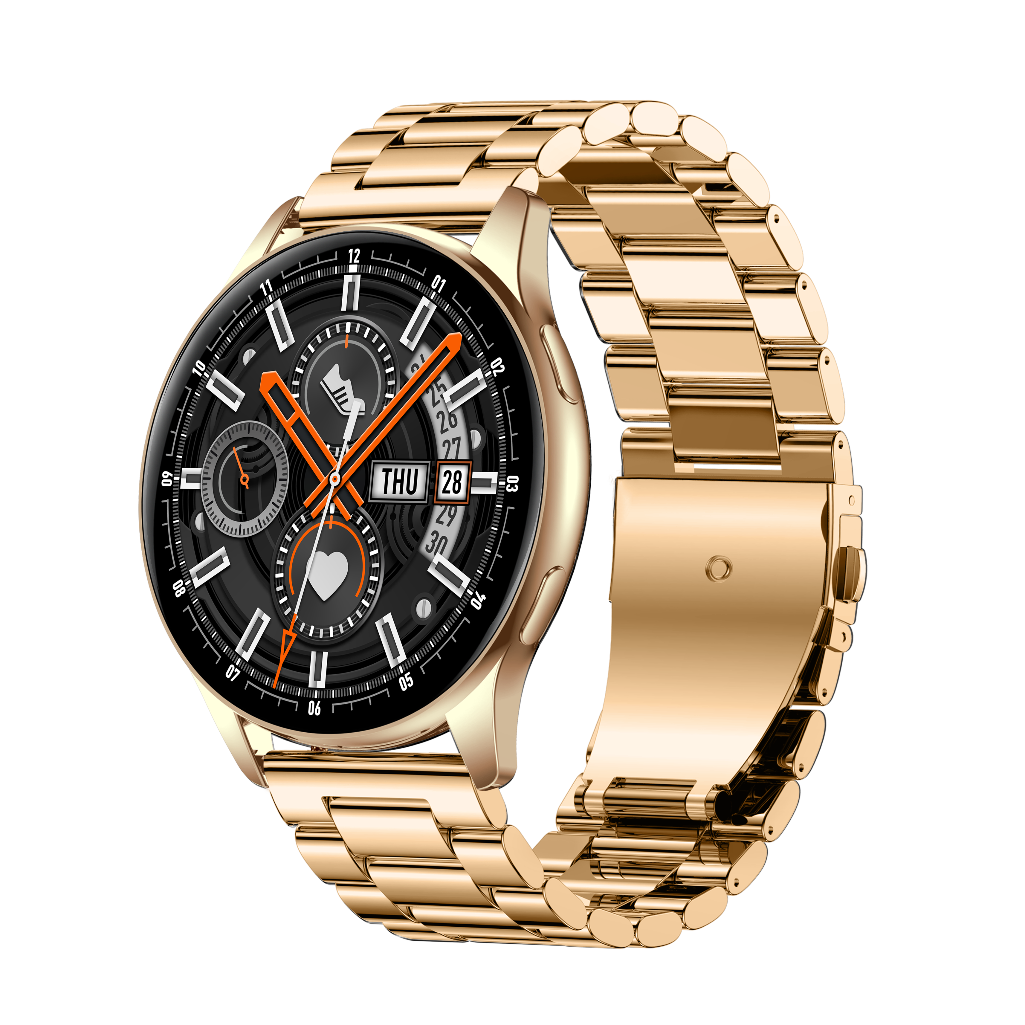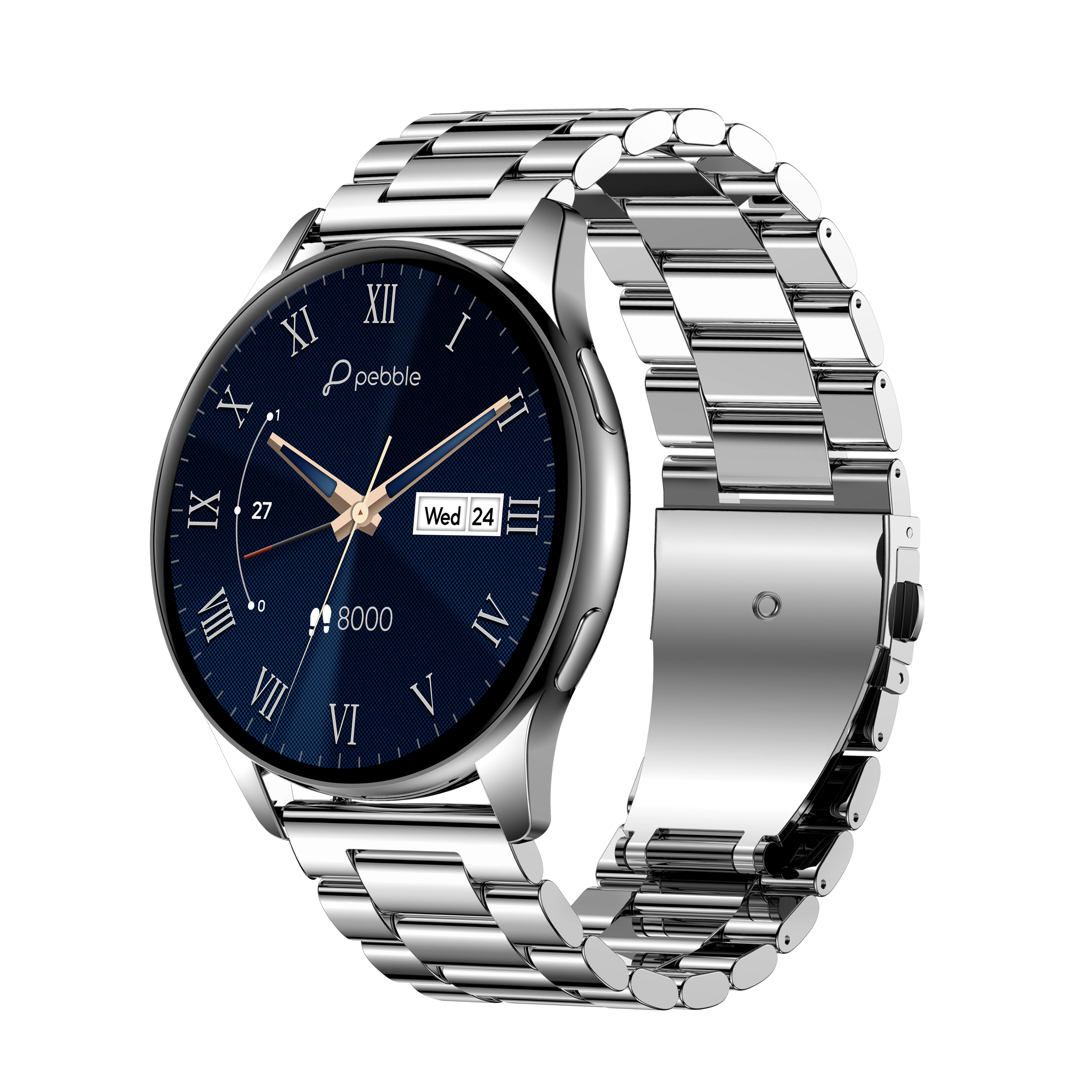The Pebble Mettle Smartwatch combines fashion and functionality with its sleek round design and Classic Gold Metal Alloy construction. The 1.32" HD Display provides a clear and vibrant interface for easy navigation and a delightful viewing experience.