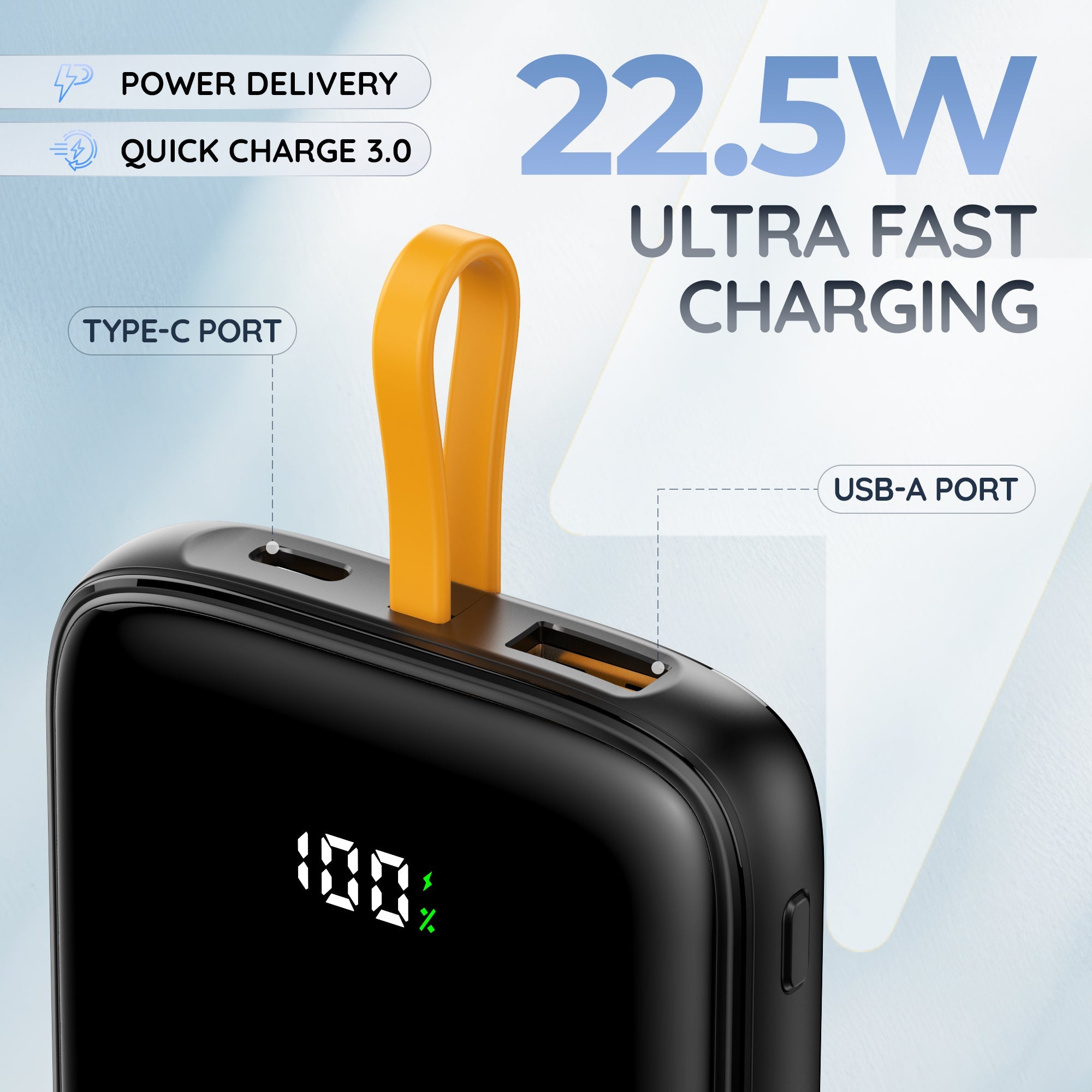 Power up your devices effortlessly with the Rapid Electra10 22.5W Ultra Fast Charging Power Bank—a high-performance charging solution designed for speed, convenience, and safety. Whether you're traveling or working, this 10000mAh powerhouse ensures uninterrupted power with Quick Charge (QC) & Power Delivery (PD) technology.