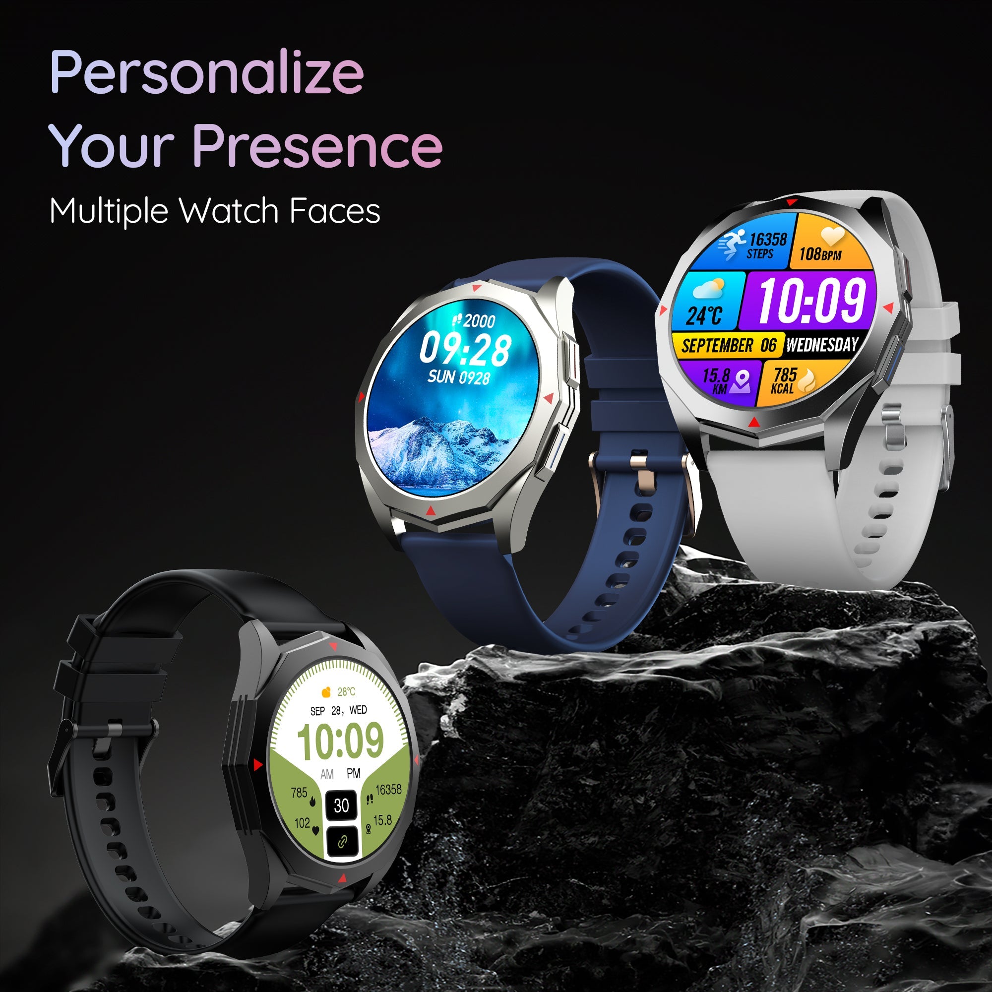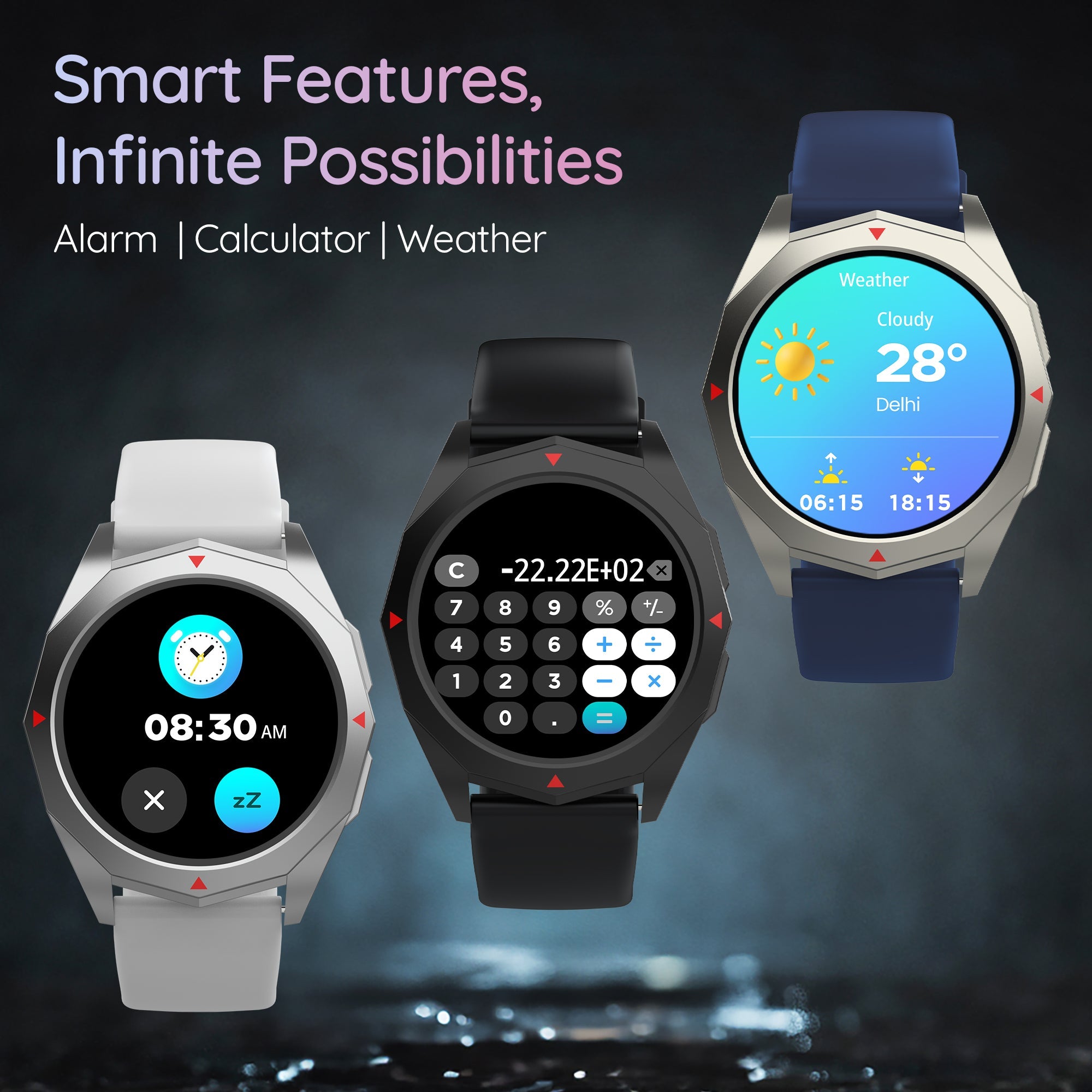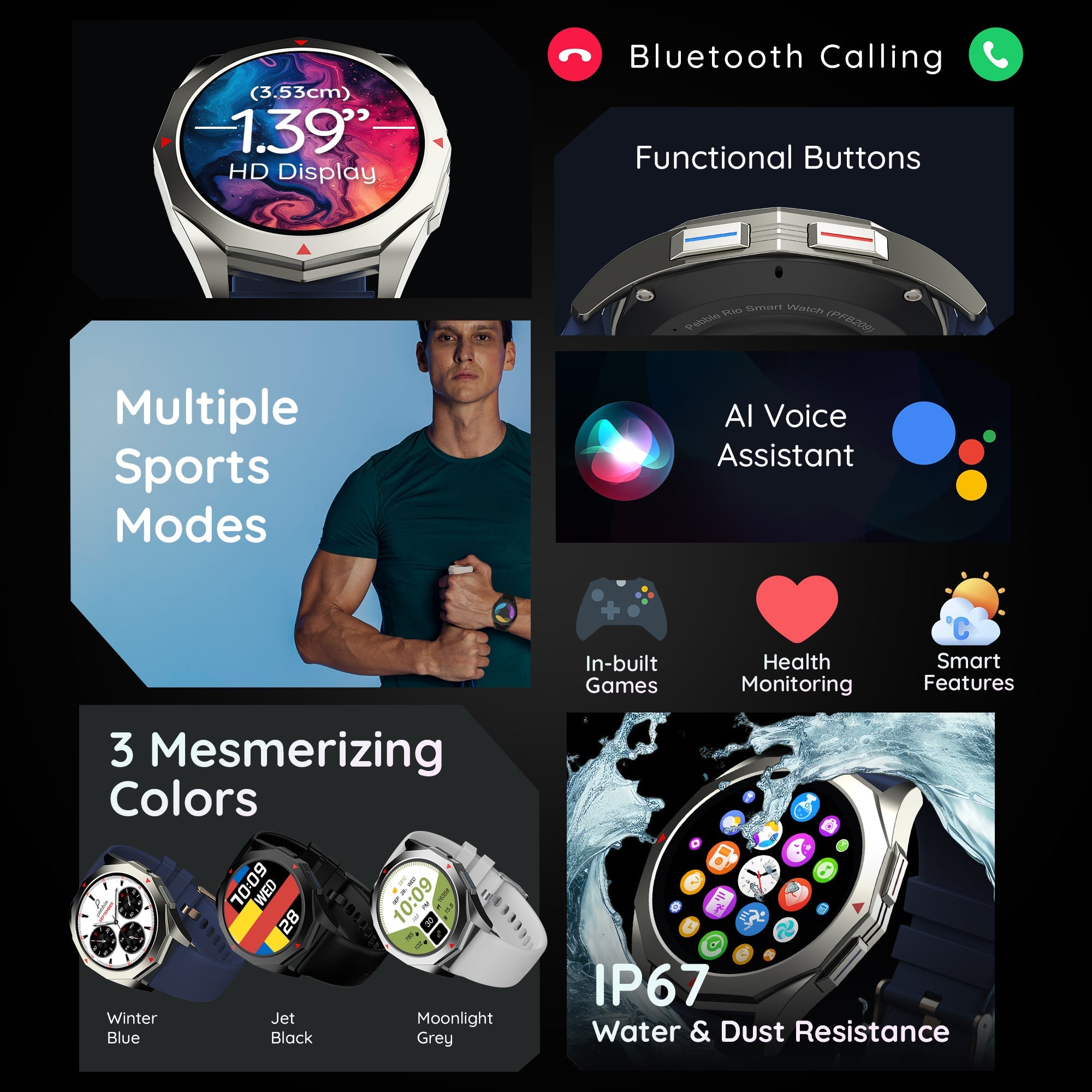 Introducing the Pebble Rio ultimate smartwatch experience: Pebble Rio 1.39" HD Display with Bluetooth Calling, Heart Rate Monitoring, SpO2 Monitoring, and a range of features including Multiple Watch Faces, Full Touch Screen, Multi Sports Modes, Sleep Monitoring, and Alarm & Notification alerts. Personalize your watch with DIY Watch Faces, all encased in a stylish Metal Body. Plus, enjoy built-in games and access to a World Clock for added convenience. Stay connected, stay fit, and stay entertained with this feature-packed smartwatch.