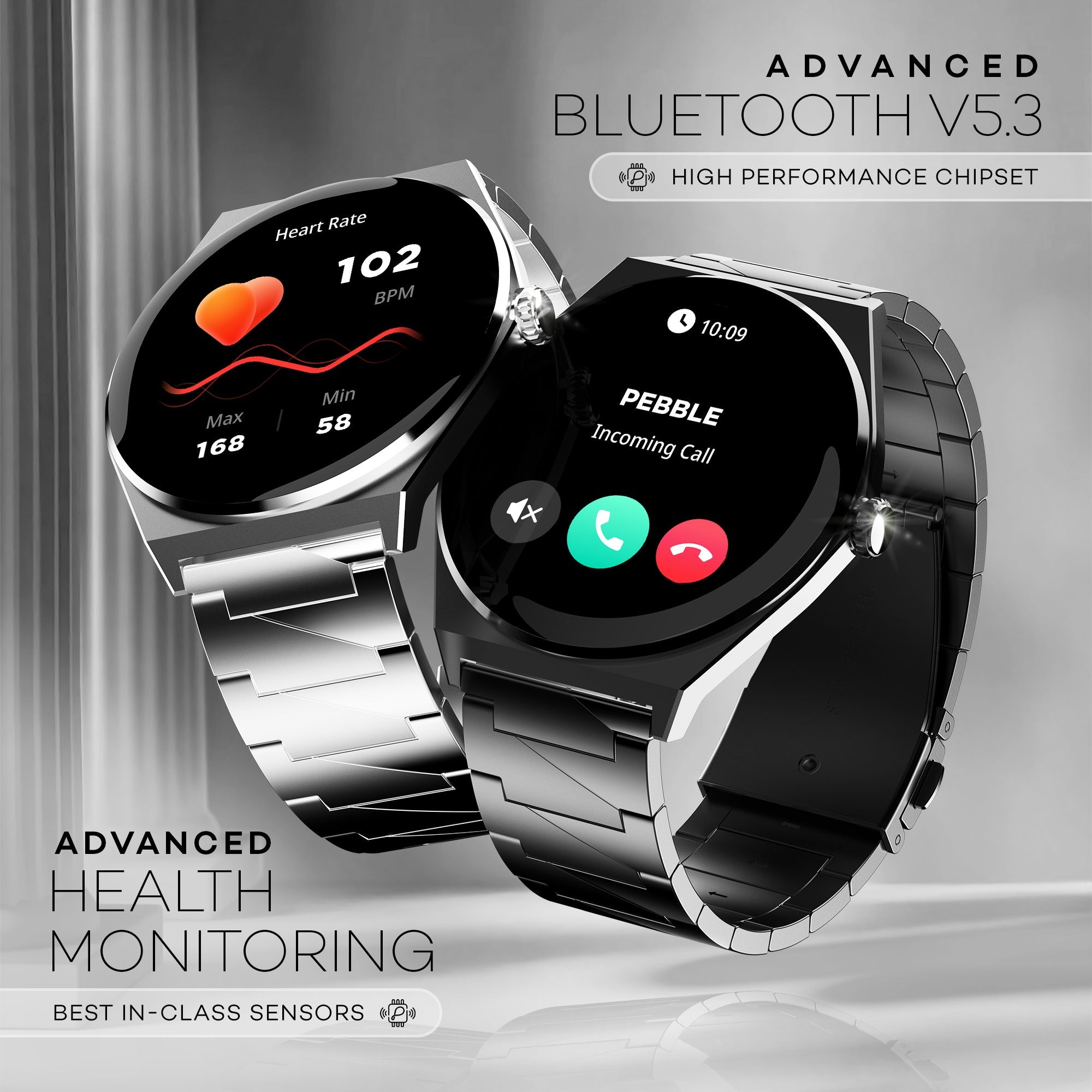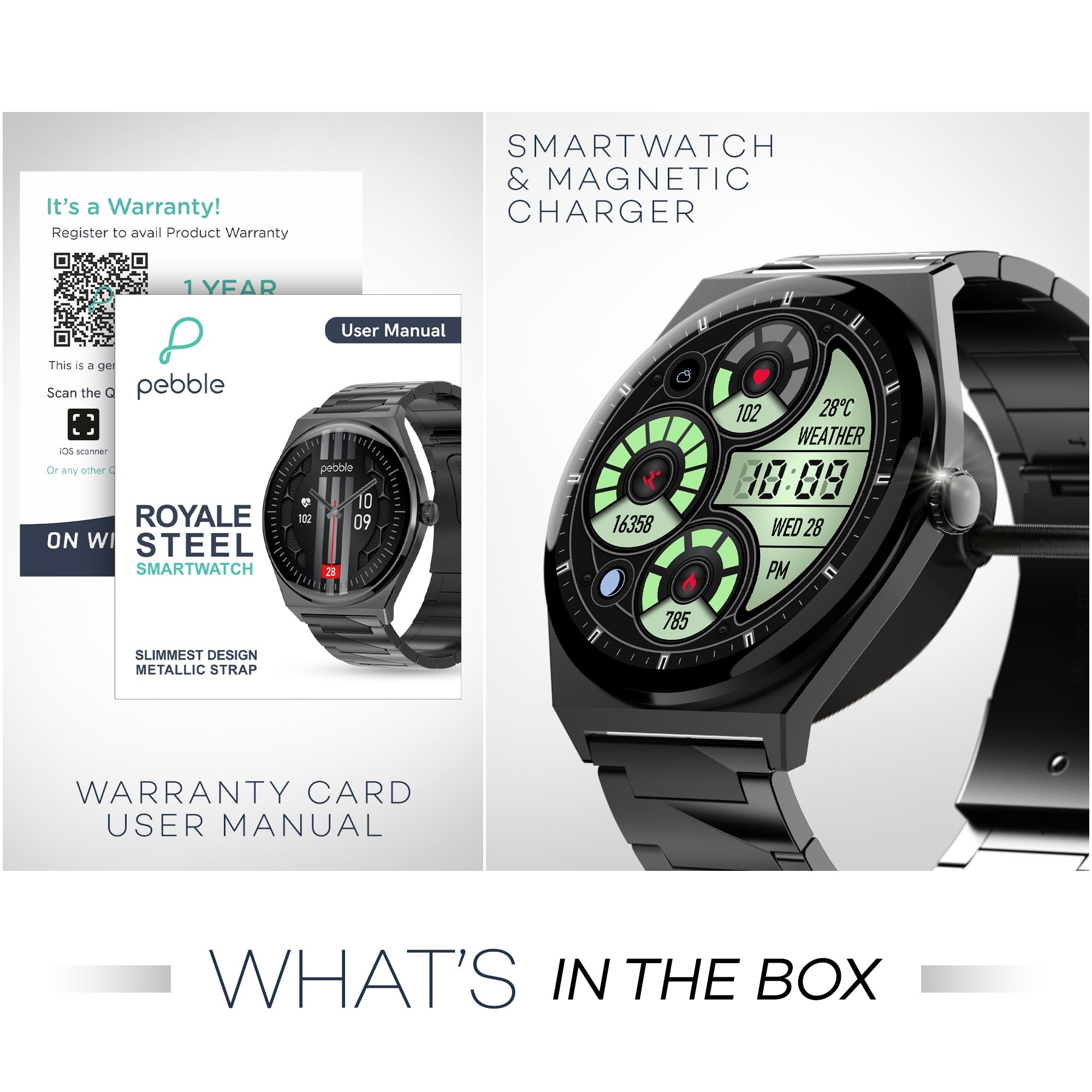 Elevate your style with the Pebble Royale Steel smartwatch, boasting a stunning 1.43" Ultra AMOLED display with 700 Nits brightness. Its slim 6.5mm dial design is crafted from high-grade stainless...
