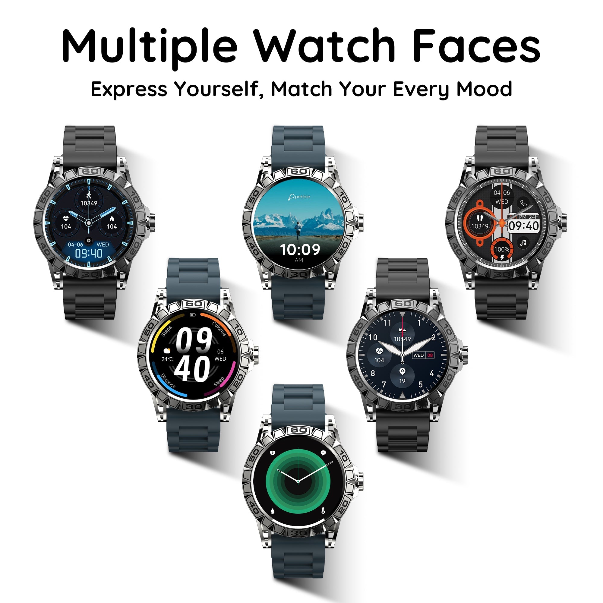 Pebble Urbane 1.39" HD Display smartwatch. Enjoy seamless BT Calling with Single Time BT Connect, stay fit with comprehensive Health Suite and Multi-Sports Modes. Stay organized with a Smart Calculator, receive alarms and notifications, all in a rugged, reliable build. It's your ultimate wrist companion for a smarter, more connected life.