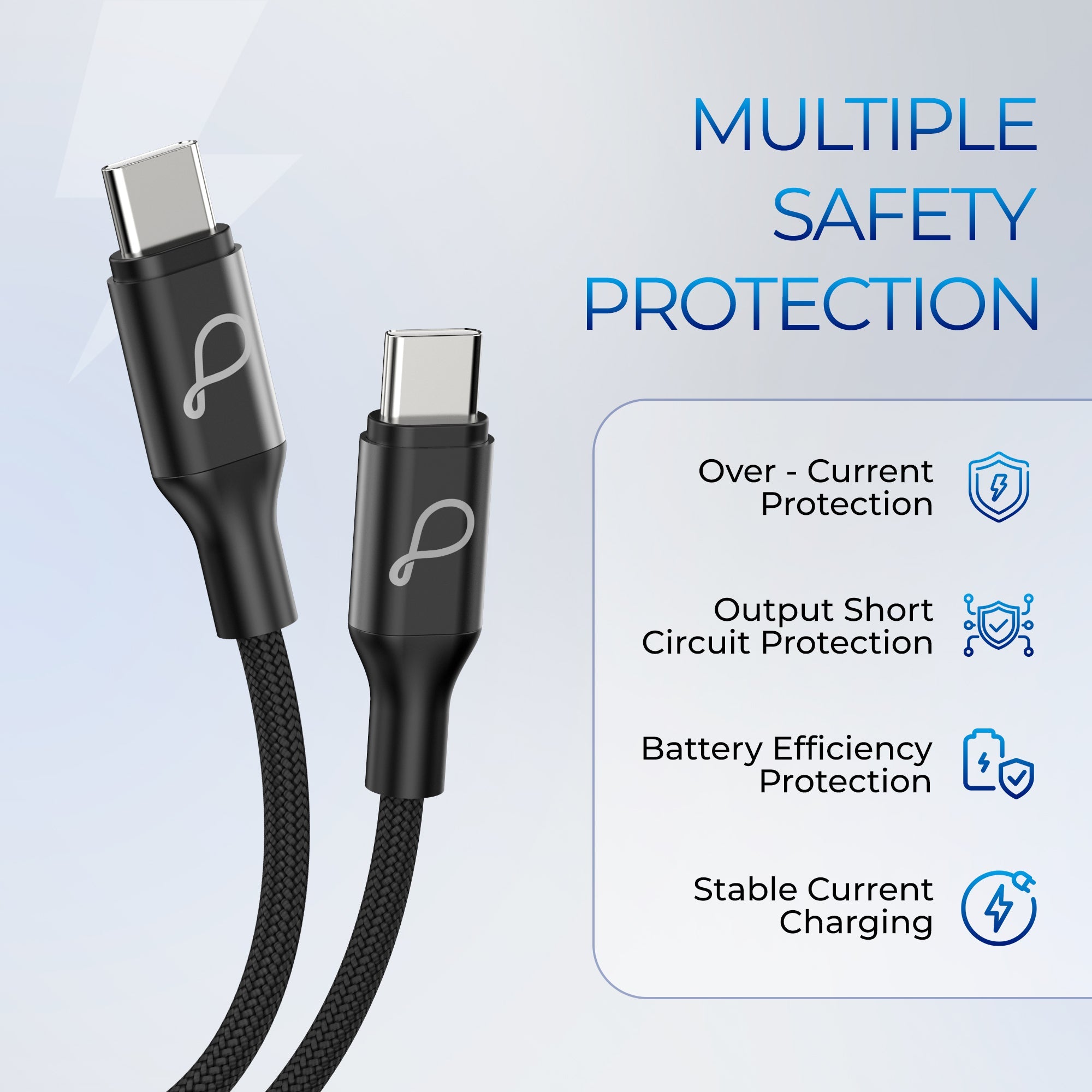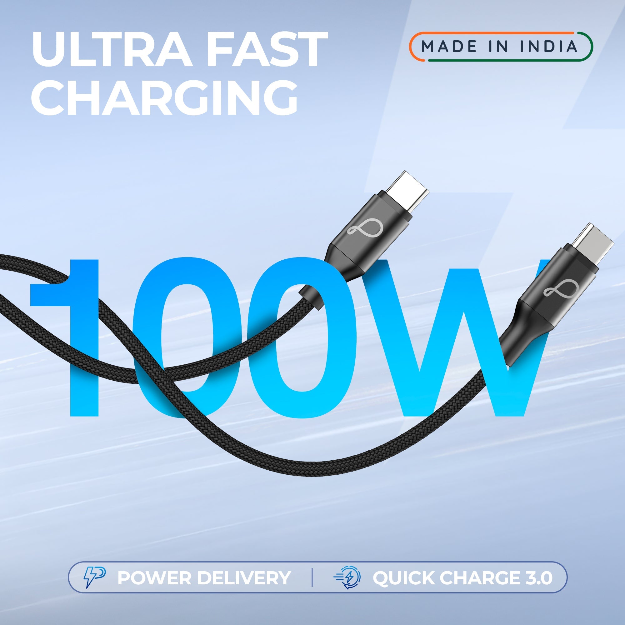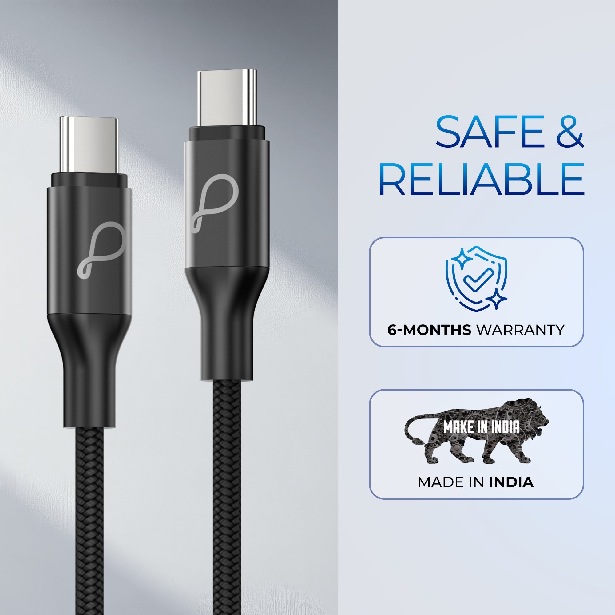 Experience the next level of charging with Pebble PNCC100, a high-performance 100W USB Type-C to Type-C cable designed for ultra-fast power delivery and seamless data sync. Whether you're charging high-end smartphones, tablets, or USB-C laptops like MacBook or Windows machines, PNCC100 delivers unmatched speed and durability wrapped in a rugged braided design.