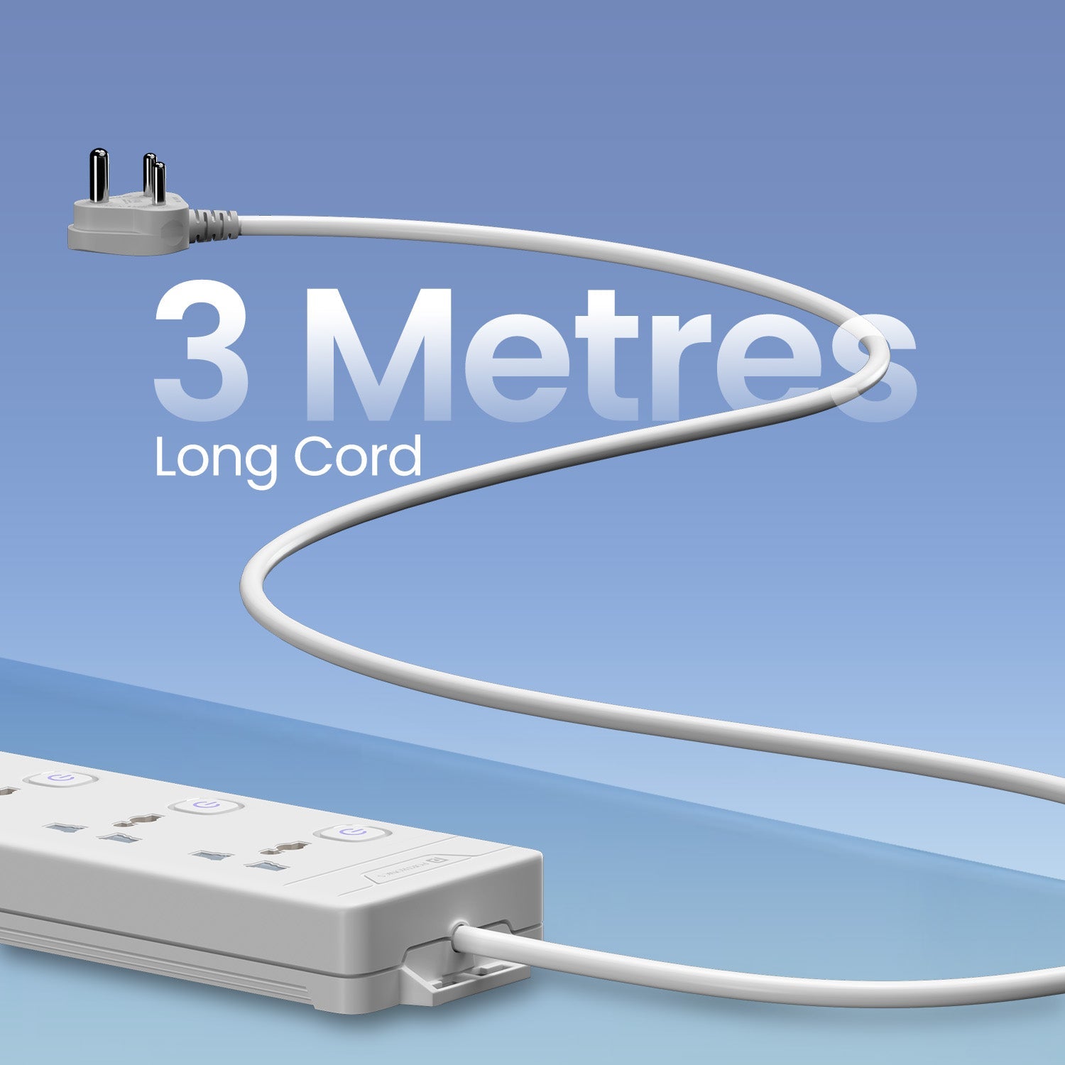 • 3 Meters Long Cord: Extra-long 3 meter cord provides flexibility in placing the extension board, making it ideal for both home and office use.