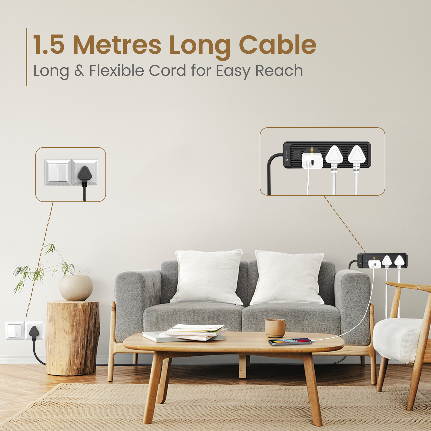 • 1.5 Meter Long Cord: The long power cord provides ample reach, allowing you to place the extension box in convenient locations without being restricted by short cables.