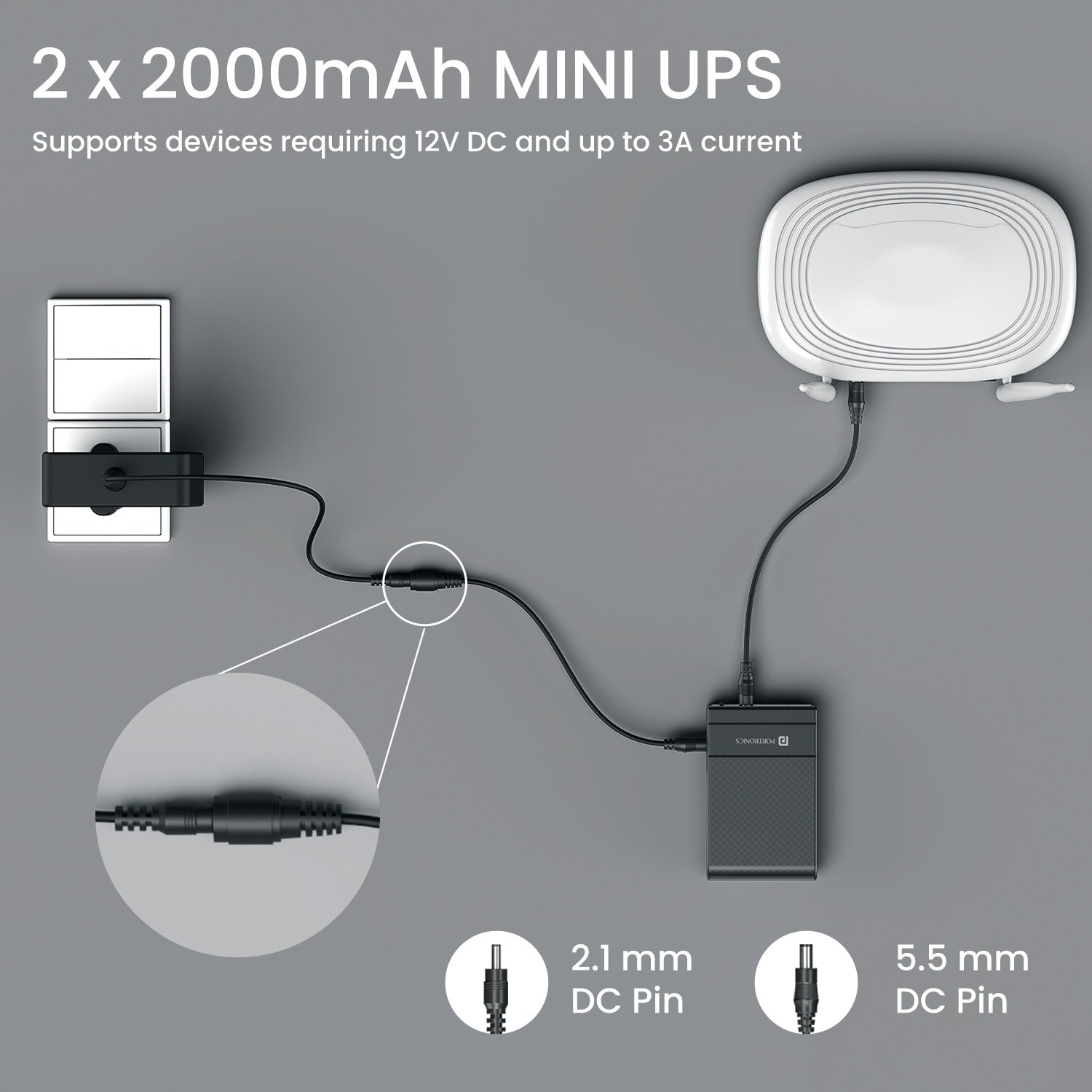 2000mah Mini Ups Uninterrupted Power flow Uninterrupted Internet During Power Cuts – Keep your 12V DC Wi-Fi routers powered even when electricity goes off, ensuring that you never lose connection...