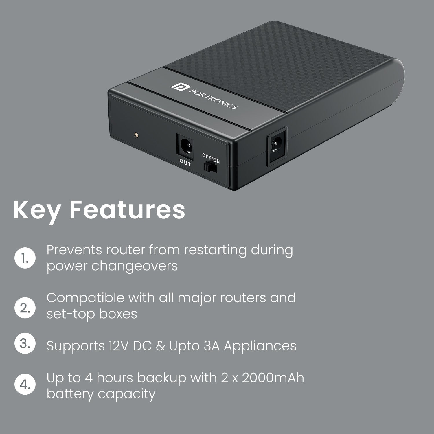 Portronics PPower plus II 2000mah extended power bank for WiFi router |router ups with multiple features