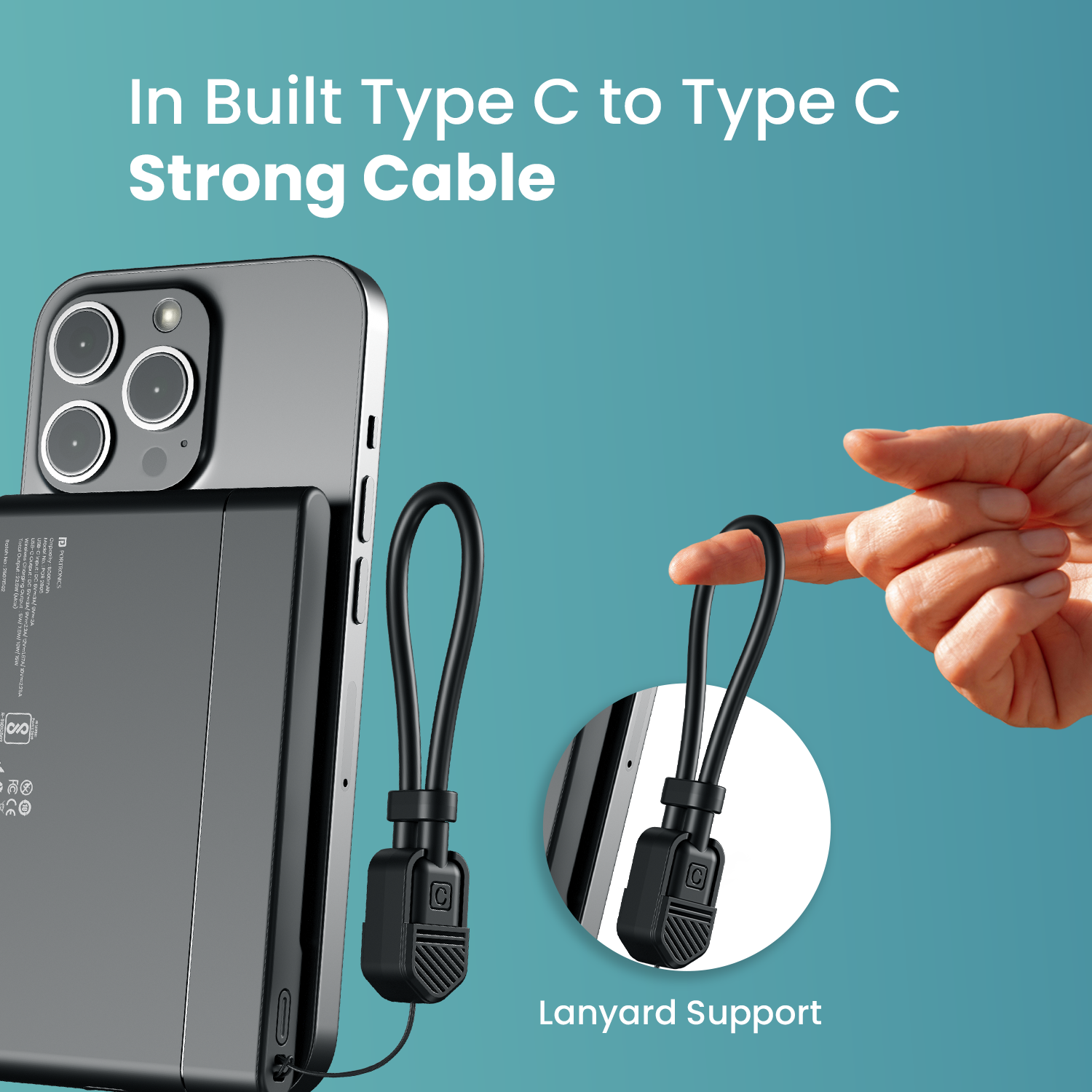 • In-Built Detachable Type-C to Type-C CableNo extra cables required. Comes with an integrated detachable Type-C cable for emergency charging anytime, anywhere.