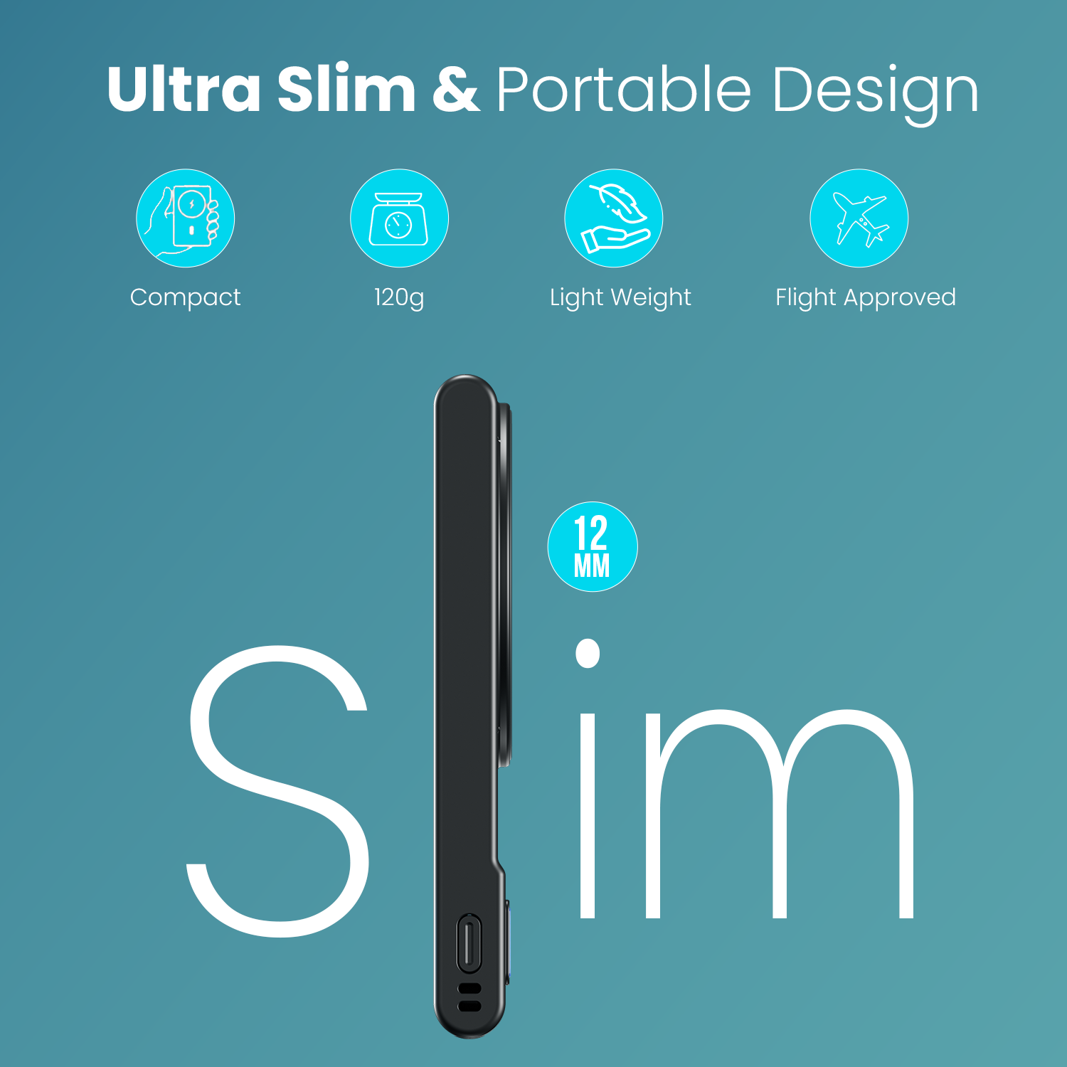 • Ultra-Slim 12mm Design for Everyday CarryLightweight, compact, and crafted for convenience. This slim wireless powerbank attaches seamlessly to your device without adding bulk.