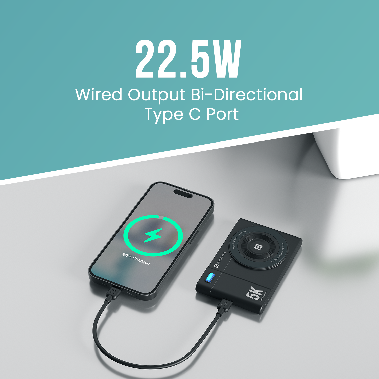 Portronics Power Shutter Air 5K 5000mah 15w mag safe fast charging wireless power bank with 22.5w wired charging