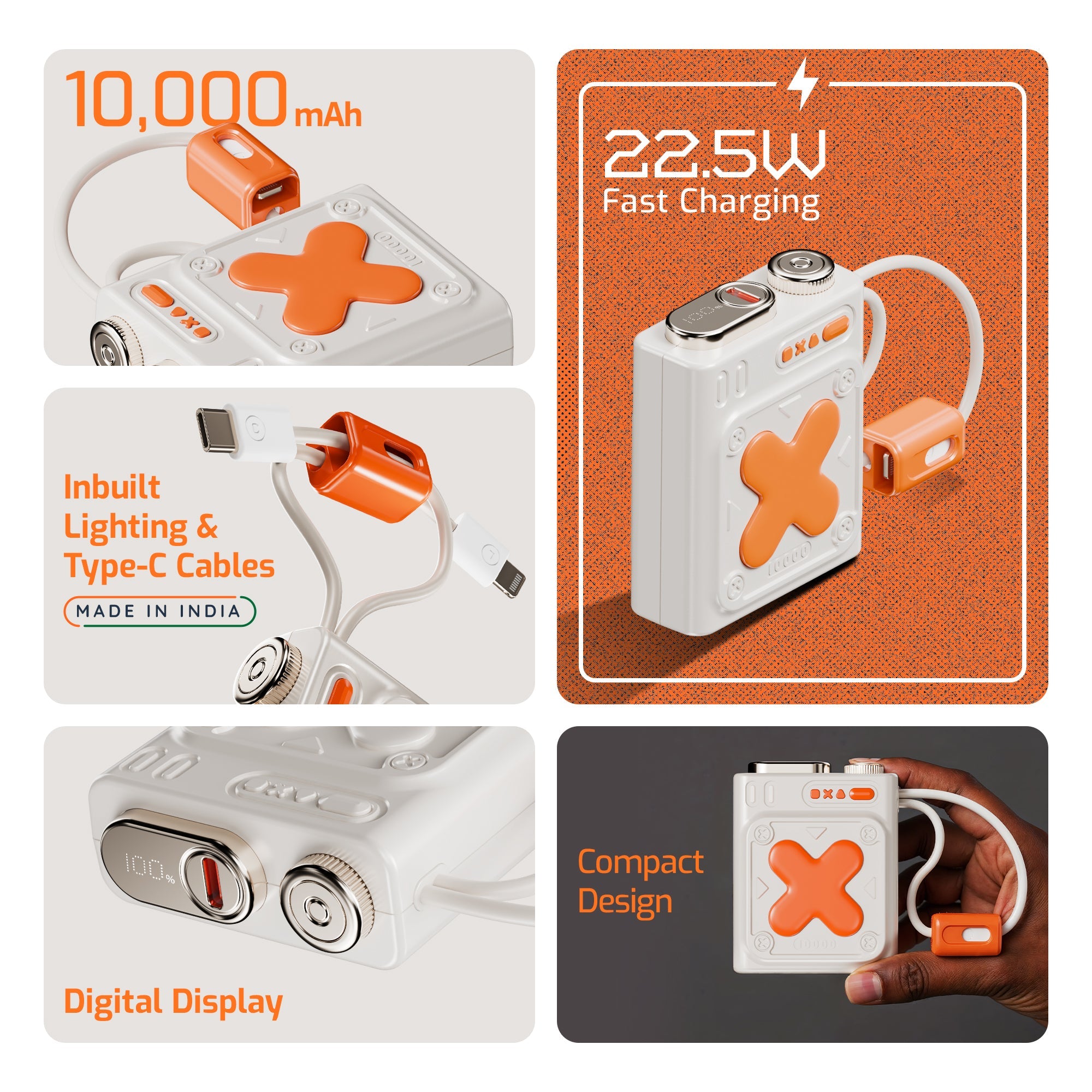 The Pebble Rapid Fuel Power Bank is your ultimate portable charging solution| offering 22.5W ultra fast charging to quickly power up your devices Designed for convenience| it features builtin Type-C and Lightning cables| eliminating the need to carry extra cords The clear digital display keeps you informed of the power bank's remaining battery life With advanced 10 Way Circuit Protection| you can charge your devices with peace of mind| knowing they are safeguarded against overcharging| over discharging| and short circuits The power bank itself is easily rechargeable via the Type-C input Its compact and lightweight design makes it an ideal travel companion| ensuring you stay powered throughout the day