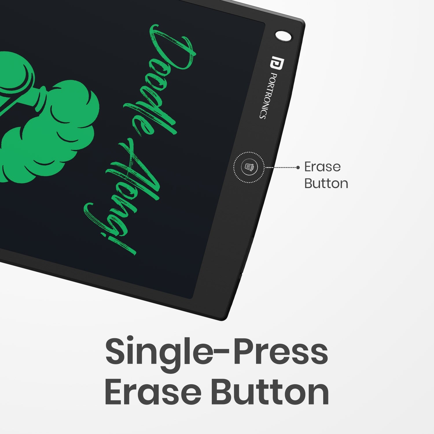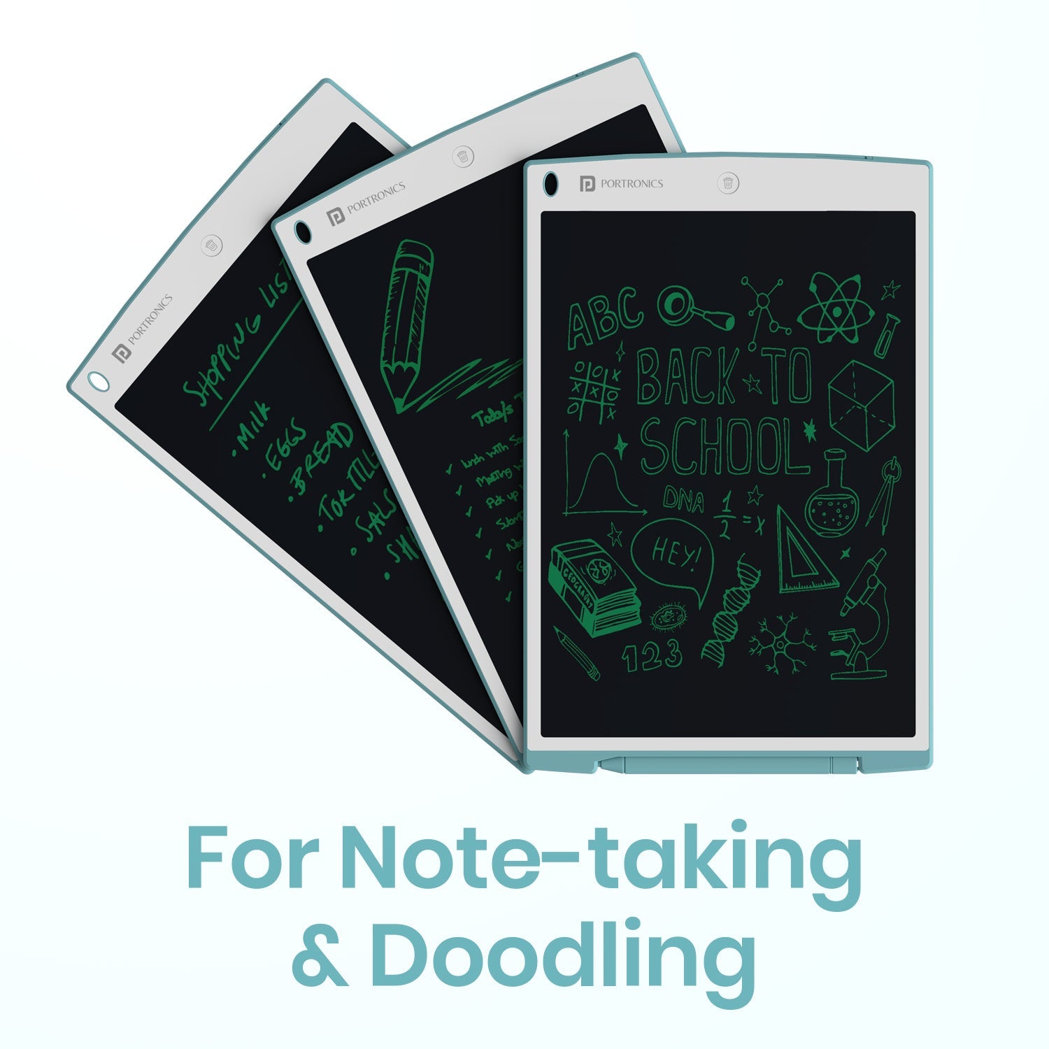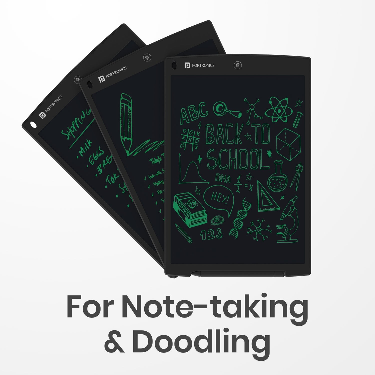 - 12-inch LCD Writing Pad: Unleash your imagination with the Portronics Ruffpad 12, a 12-inch LCD Writing Pad perfect for doodling, note-making, and jotting down brilliant ideas.