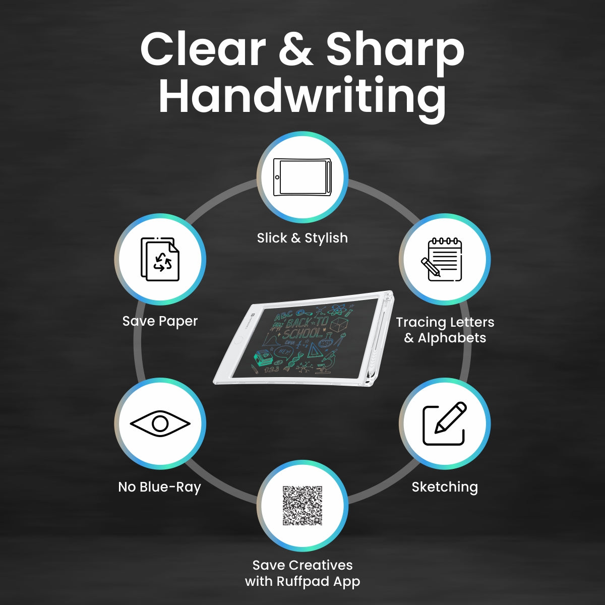 • Durability that tags along portability - The low power consumption feature of this digital writing pad makes it durable for a longer run. Ruffpad One is lightweight, and its compact design makes it easy to carry around with you.