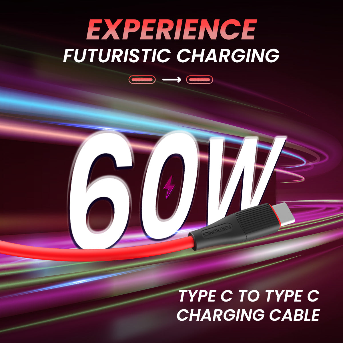 - 60W PD Fast Charging: Portronics Silklink, a Type C to Type C PD cable, provides fast charging with a max output of 60W to charge all your Type C devices faster than ever with compatible USB-C adapters.