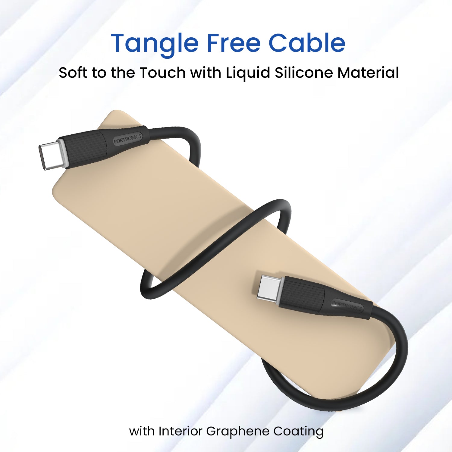 - Non-Tangle Design: Don’t get tangled in the mess of wires, Let the Portronics Silklink Type C to Type C cable keep it neat and organized for you, and eliminate the frustrating knots.