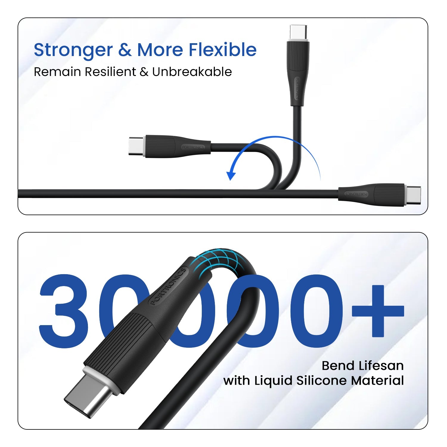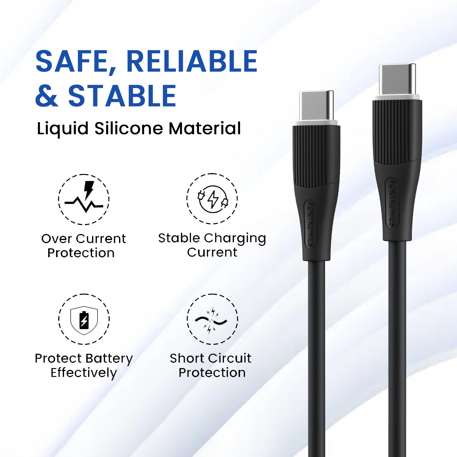 - Durable and Flexible: Built to withstand wear and tear, the Portronics Silklink Type C to Type C cable is crafted from premium silicone material that can endure daily wear and tear, ensuring long-lasting performance and reliability.