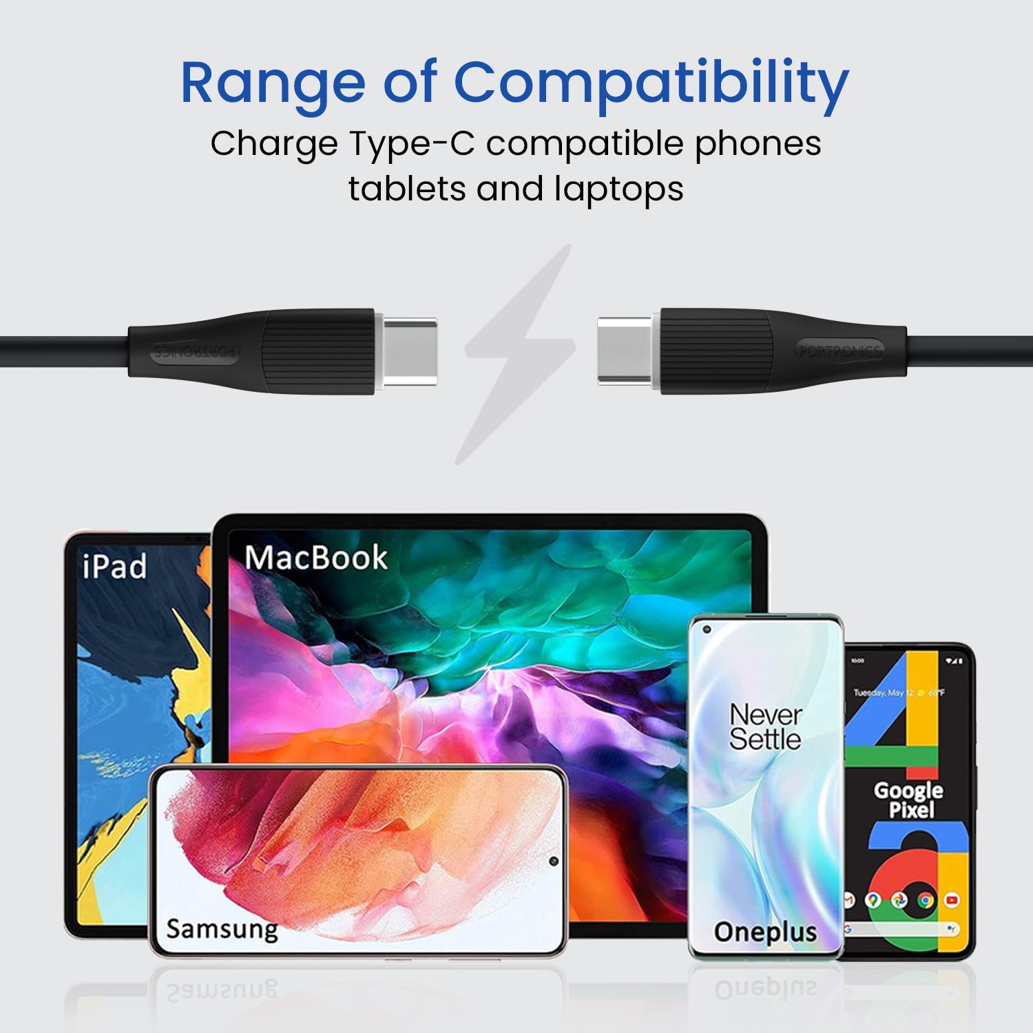 - Sync in Speed: Enjoy rapid data sync with the Portronics Silklink Type C to Type C cable, ensuring quick and efficient transfer and access to your files and media without any delay.