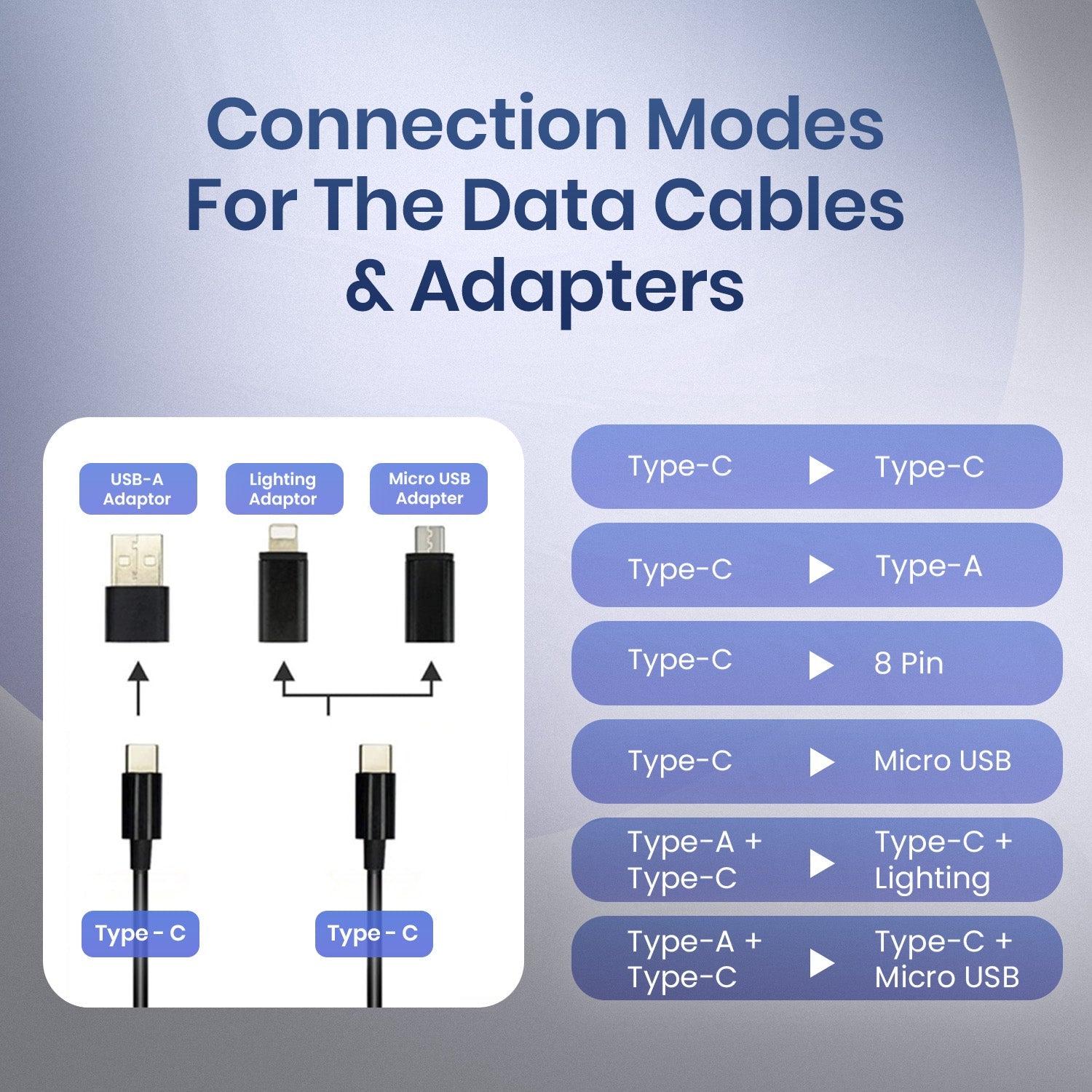 Multiple Connector Support – Includes USB-A, 8 Pin (Lightning), and Micro Pin adapters for universal compatibility with various devices.