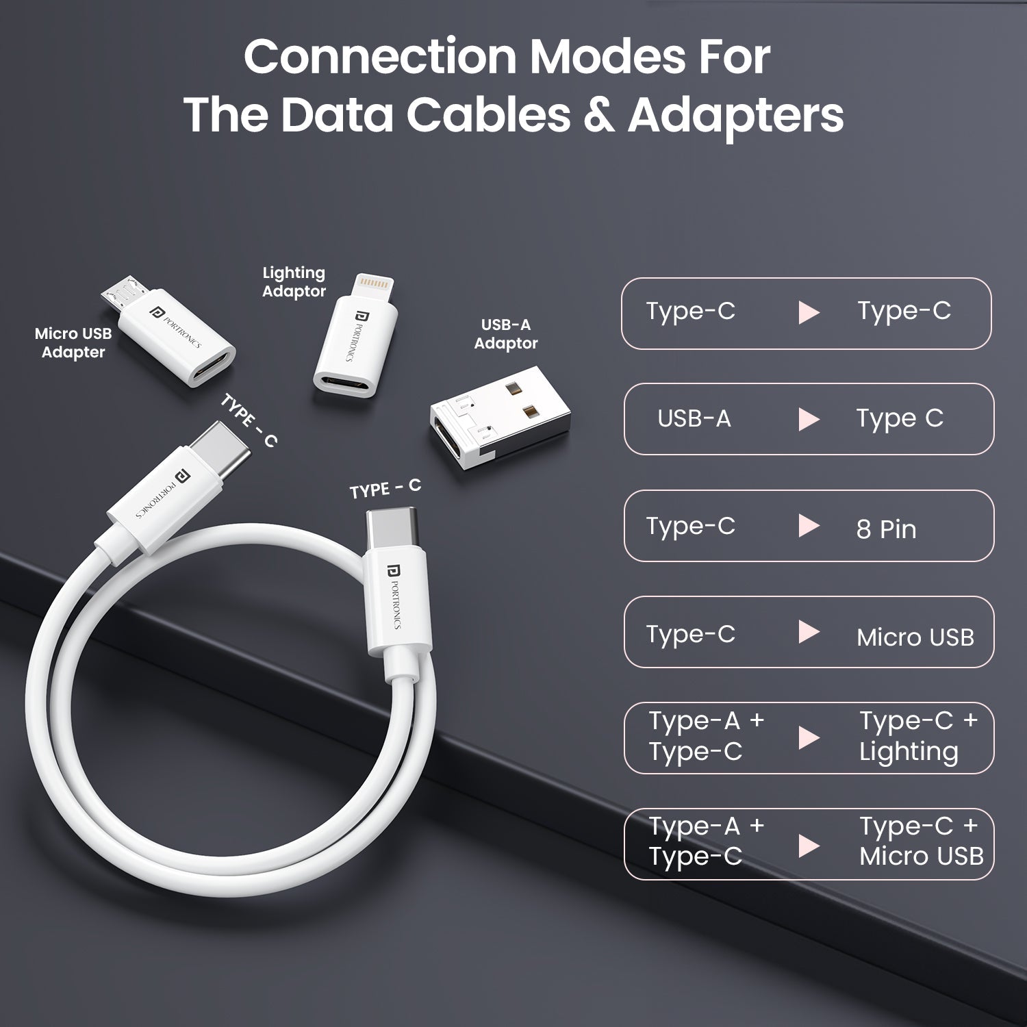 Versatile Connectors : Includes Type-C to Type-C cable, 8-pin lightning connector, USB-A Pin and Micro USB pin for compatibility with multiple devices like smartphones, tablets, and accessories.