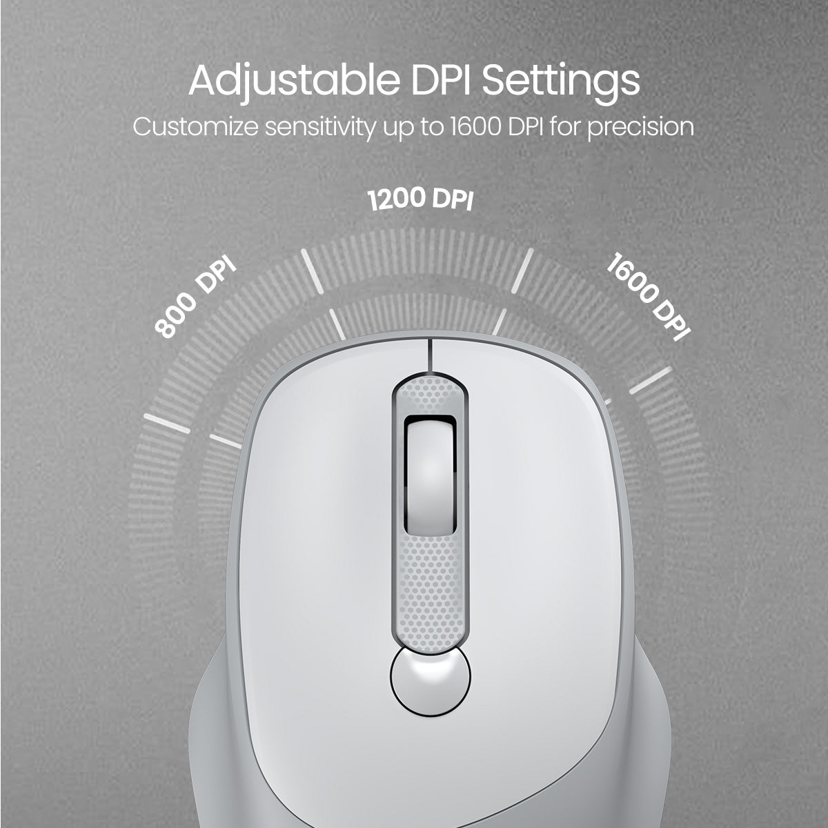 • Customizable DPI Settings: With adjustable DPI settings up to 1600, this wireless mouse lets you easily switch between sensitivity levels, giving you precise control for tasks requiring high accuracy or speed.
