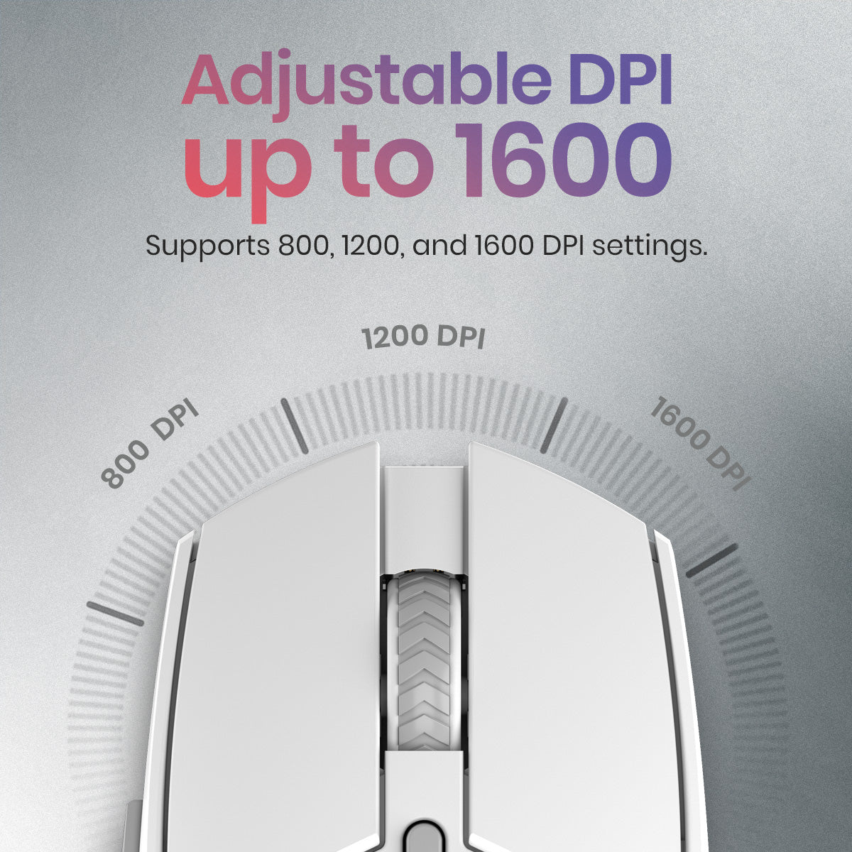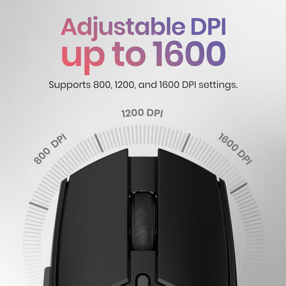 - Adjustable DPI Settings: Easily toggle between sensitivity levels with adjustable DPI settings up to 1600. The customizable DPI ensures accurate tracking and responsive cursor control for different tasks and screen sizes.