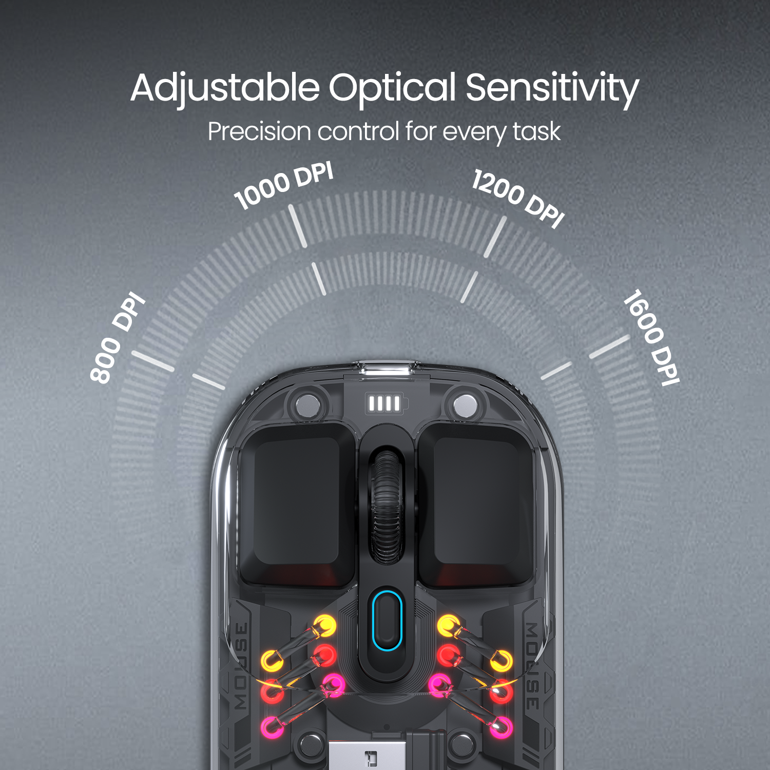Portronics Toad 5 Wireless Mouse for Laptop| rechargeable wireless mouse| wireless mouse with transperant casing| transparent rgb wireless mouse for office work