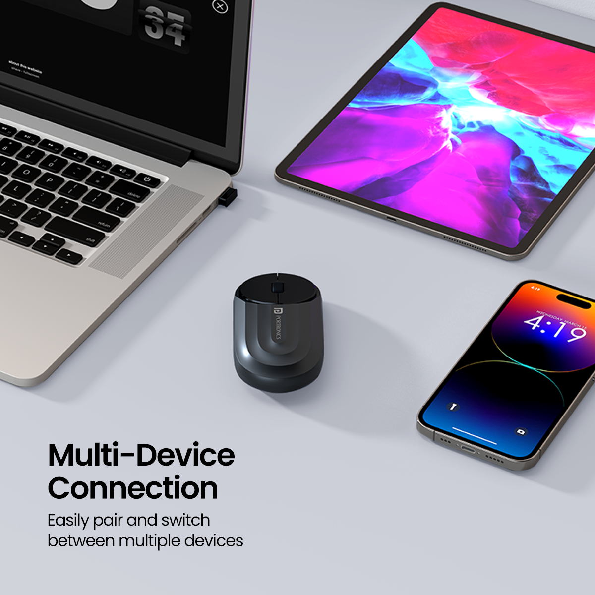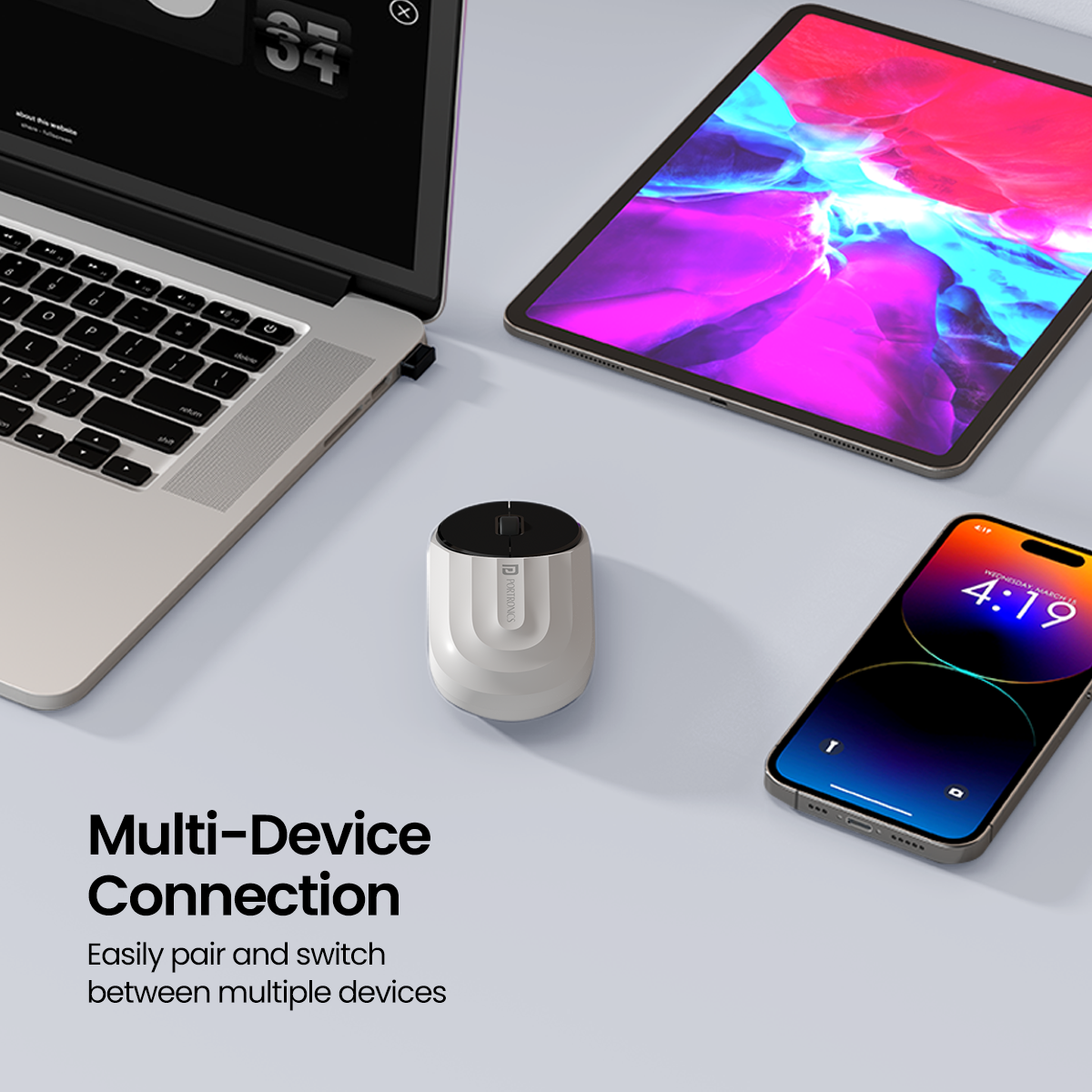 • Multi-Device Pairing: Pair the mouse with up to 2 devices at one time, one using the 2.4 GHz USB receiver, and the other using Bluetooth. It is compatible with Laptop, Desktop, Tablets, and Smartphones.
