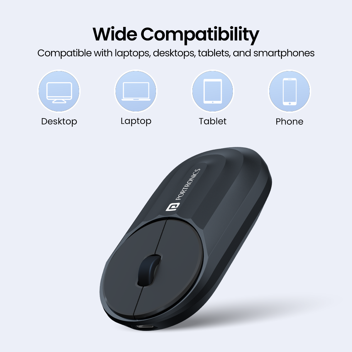 Flat Ergonomic Design Dual Wireless Connectivity: Using the latest wireless technology, the Portronics Toad 6 wireless mouse can connect to your devices wirelessly using Bluetooth and the 2.4 GHz USB...