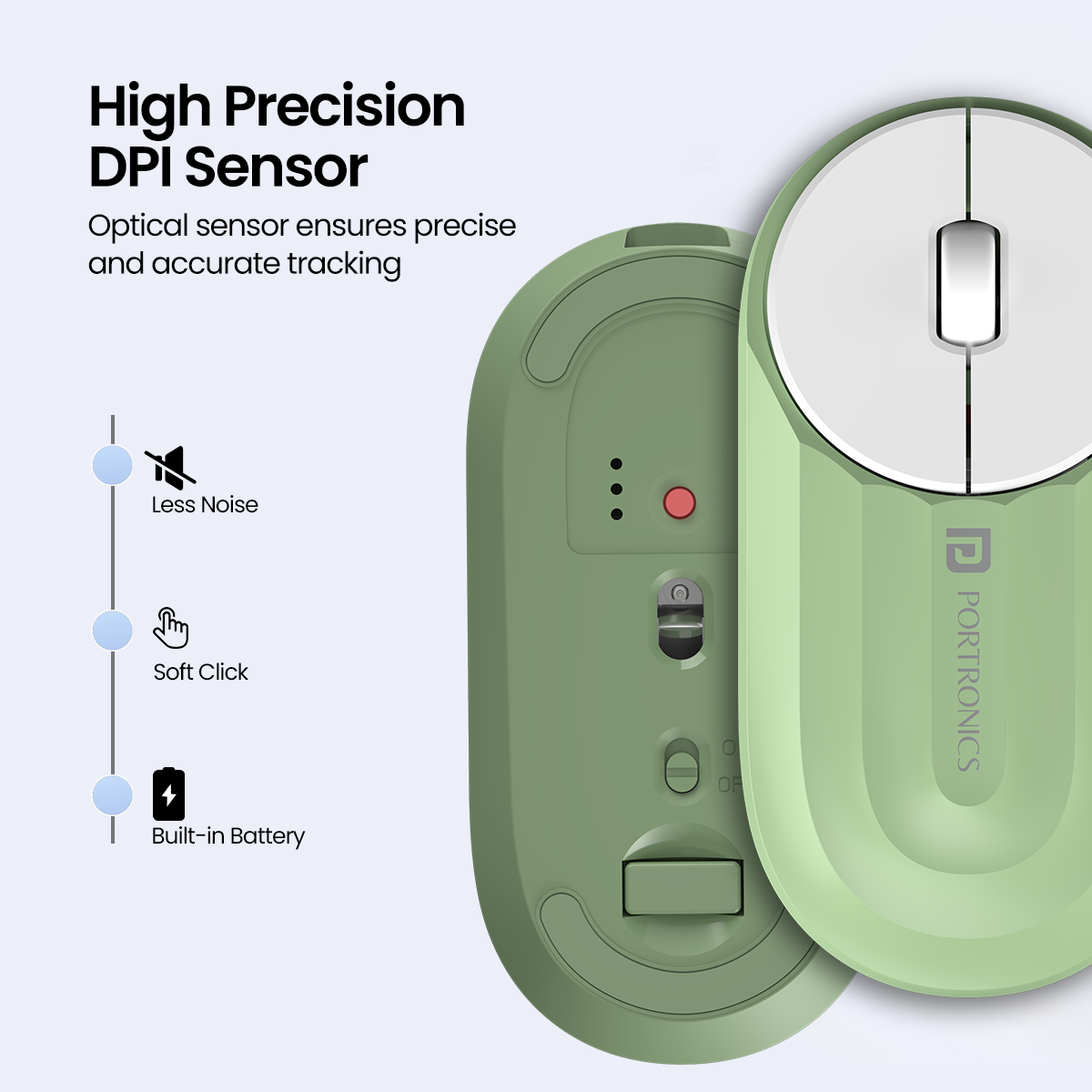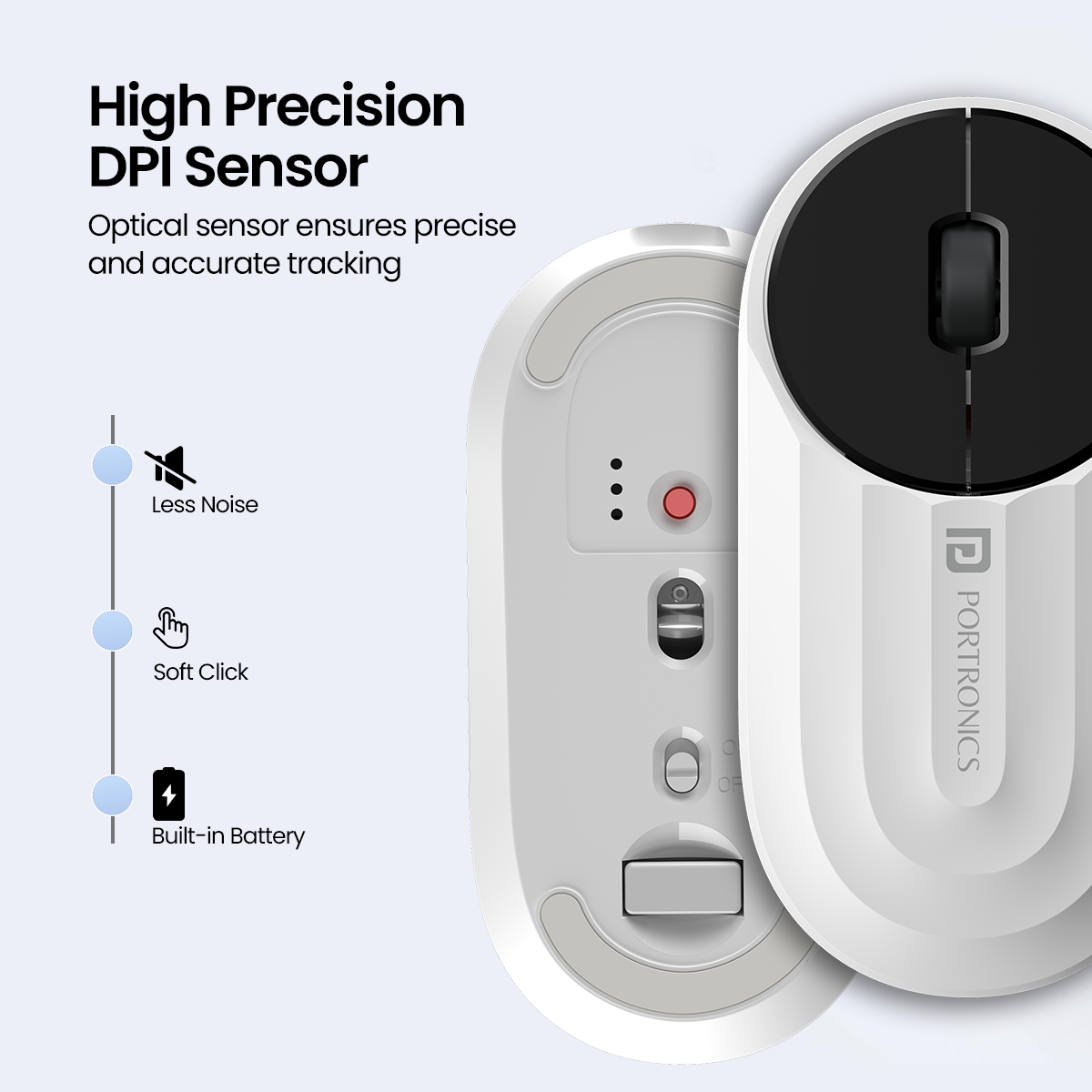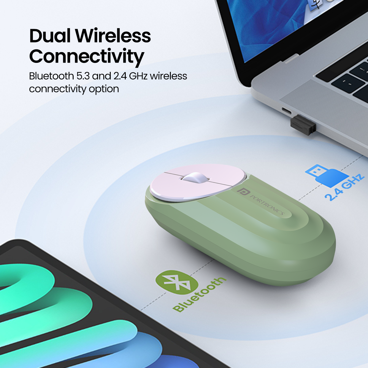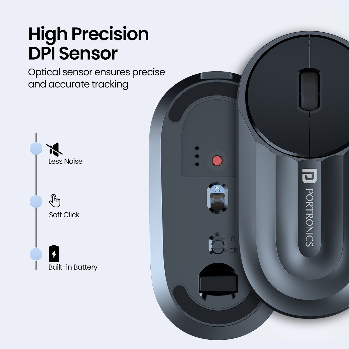 • Dual Wireless Connectivity: Using the latest wireless technology, the Portronics Toad 6 wireless mouse can connect to your devices wirelessly using Bluetooth and the 2.4 GHz USB receiver.