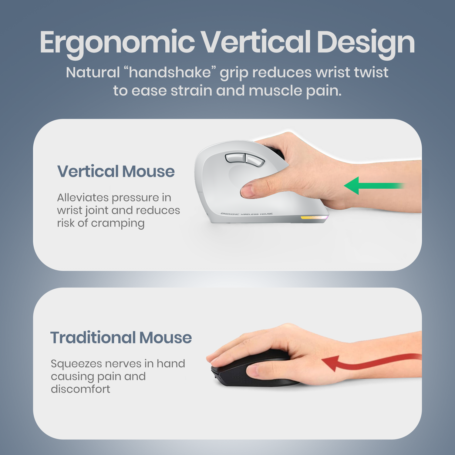 Ergonomic Wireless Mouse Ergonomic Vertical Mouse for Wrist Pain Relief – natural handshake grip reduces strain; right-hand design helps prevent fatigue/carpal tunnel during long office or WFH sessions. Dual-Mode Connectivity...