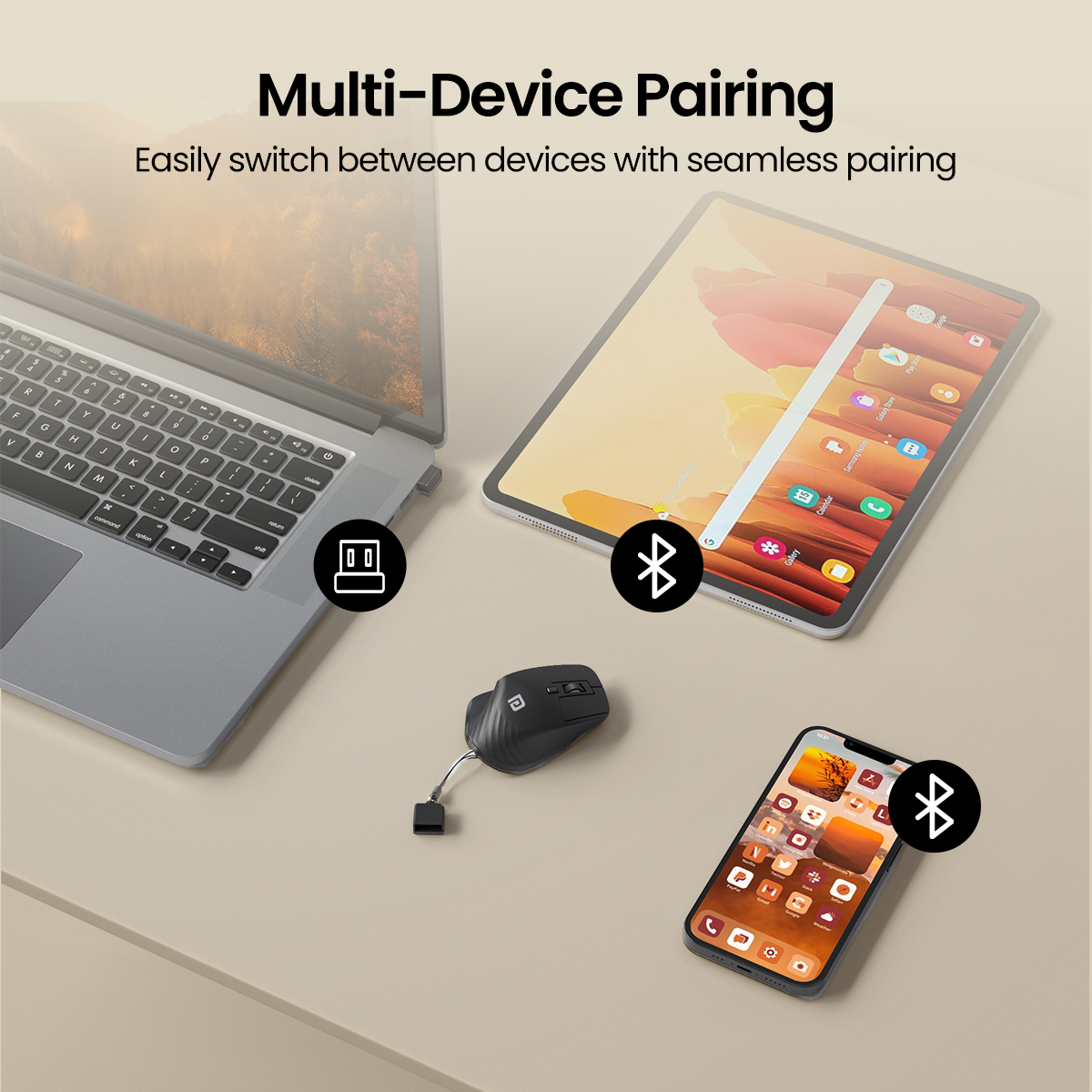 - Multi-Device Pairing: Effortlessly connect and switch between multiple devices with ease, allowing for seamless multitasking whether you're working on a laptop or using a tablet.