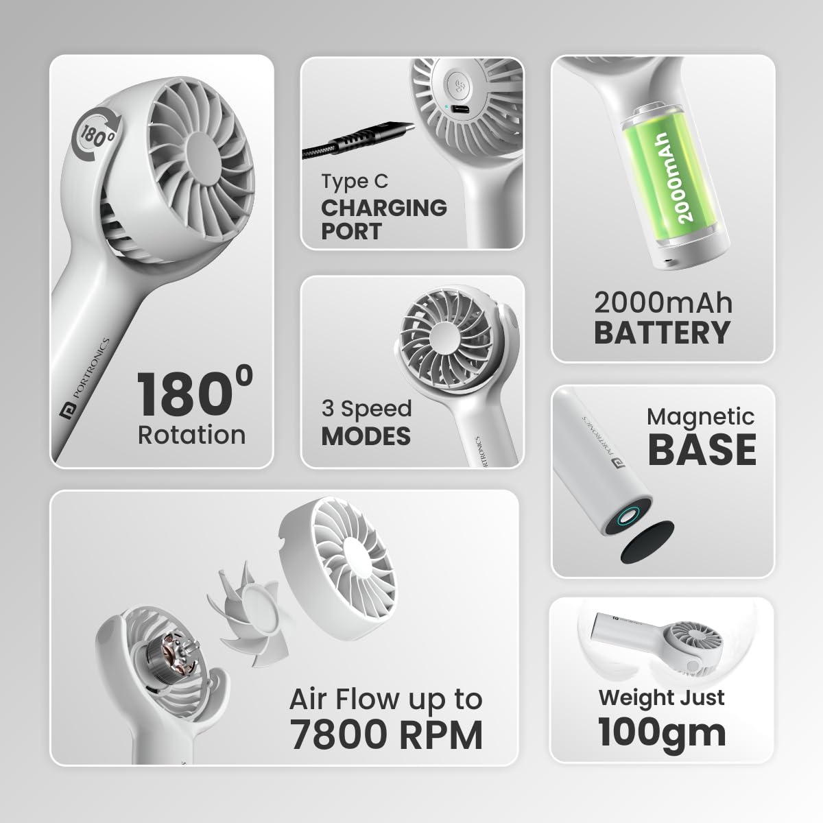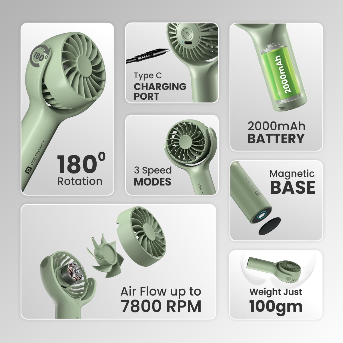 Portronics Toofan Mini Compact wireless Portable Fan with c type charging| rechargeable mini fan with type c port| rechargeable min hand fan at best price