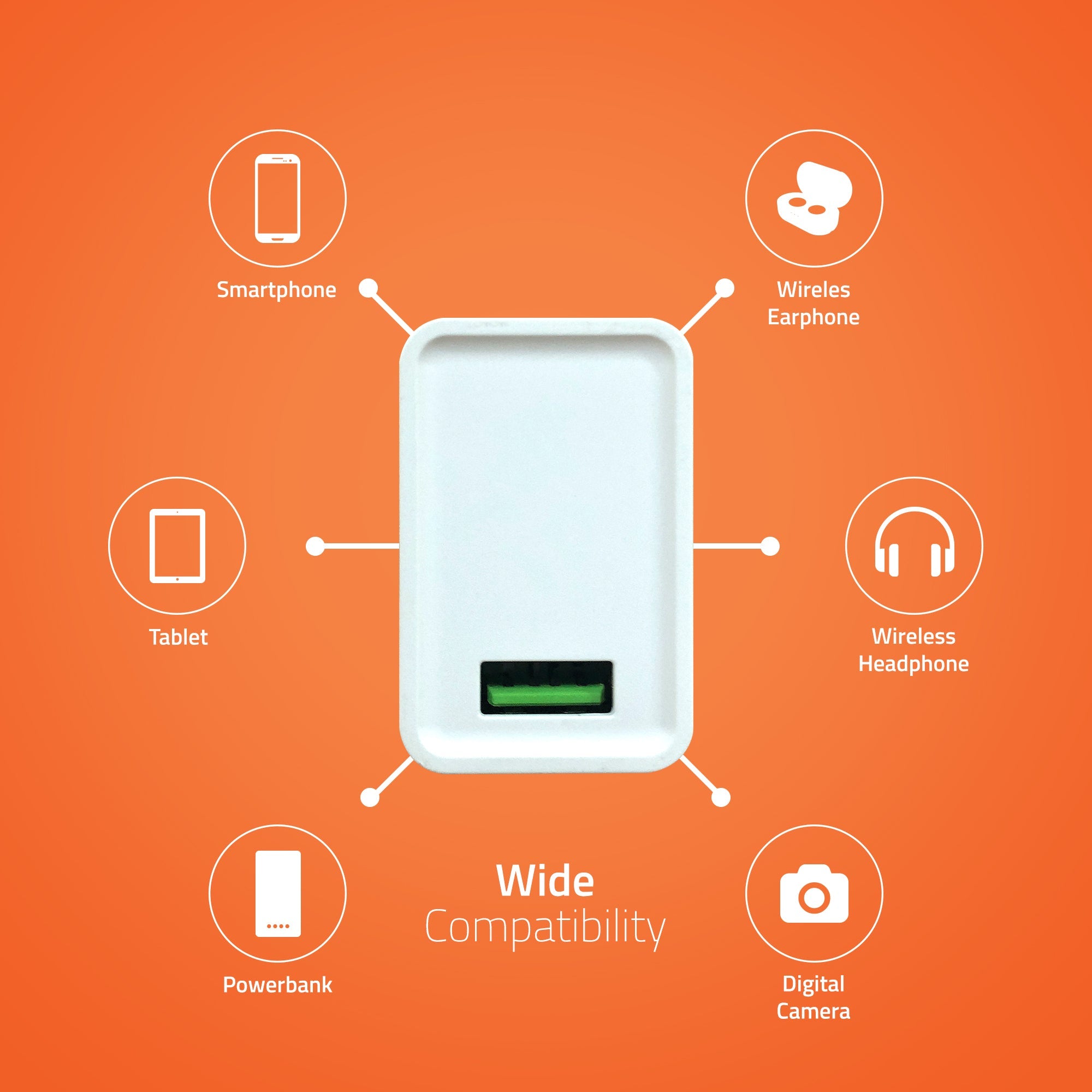 UQC100 is a Quick Charge 3.0 Enabled wall charger with BIS Certified. The output of the charger is at 5V-3A/ 9V-2A/ 12V-1.5. The charger comes with all-round Safety (Surge protection/short circuit protection, single port current protection/output overcurrent protection). The charger is suitable for all mobile phones, Tablet, Power bank, Digital camera, And Wireless Headphones & Earbuds